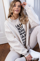 Bluza Biggie z napisem I’m not sure what I’m doing out of bed - jeśli chcecie wysłać światu sygnał, że mimo ciężkiego czasu czy chwili słabości, stawiacie czoła rzeczywistości i dajecie radę na własnych zasadach, bo nigdy nie wiadomo, kiedy może spotkać nas coś niesamowitego, a bieg zdarzeń może się odmienić.