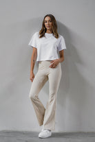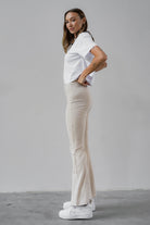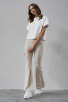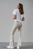 Bella to uniwersalne, ponadczasowe dzianinowe leginsy, ale w stylu lat 90’, bo z charakterystycznie rozszerzanymi, dzwonowatymi nogawkami.