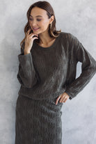 Główną uwagę przykuwa jej wzór pełen drobnych, romantycznych i subtelnych prześwitów, tworzy urzekającą grę światła na skórze, dodając każdej stylizacji zmysłowego uroku. Na tym nie koniec. Luźny krój i długie rękawy nadają nonszalanckiej elegancji, a delikatne wykończenie jeszcze więcej stylu. Miękki materiał delikatnie układa się na sylwetce, podkreślając jej naturalne piękno. Ta propozycja dosłownie otula ciało subtelną mgiełką lekkości.