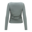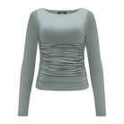 Uszyta z miękkiego modalu z dodatkiem elastanu, delikatnie połyskująca, idealnie dopasowuje się do sylwetki, podkreślając jej atuty. Marszczenia po bokach tworzą nie tylko subtelną grę światła, ale też sprytnie modelują linię talii. Długi rękaw i klasyczny dekolt w łódkę sprawiają, że odnajdzie się w stylizacjach przez cały rok.