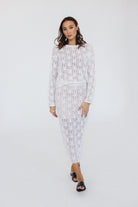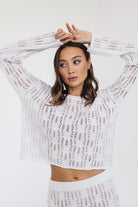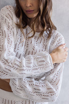 Główną uwagę przykuwa jej wzór pełen drobnych, romantycznych i subtelnych prześwitów, tworzy urzekającą grę światła na skórze, dodając każdej stylizacji zmysłowego uroku. Na tym nie koniec. Luźny krój i długie rękawy nadają nonszalanckiej elegancji, a delikatne wykończenie jeszcze więcej stylu. Miękki materiał delikatnie układa się na sylwetce, podkreślając jej naturalne piękno. Ta propozycja dosłownie otula ciało subtelną mgiełką lekkości.
