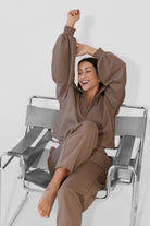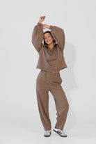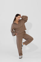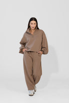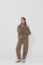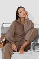 To minimalistyczna bluza, która nabiera charakteru za sprawą formy i kilku nieszablonowych rozwiązań, dlatego świetnie sprawdzi się zarówno na co dzień, jak i w bardziej stylowych, miejskich zestawach. My nosimy ją do naszych dżinsów Suzy, a gdy chcemy poczuć się jeszcze bardziej komfortowo zestawiamy z dresami Monica.