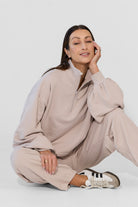 To minimalistyczna bluza, która nabiera charakteru za sprawą formy i kilku nieszablonowych rozwiązań, dlatego świetnie sprawdzi się zarówno na co dzień, jak i w bardziej stylowych, miejskich zestawach. My nosimy ją do naszych dżinsów Suzy, a gdy chcemy poczuć się jeszcze bardziej komfortowo zestawiamy z dresami Monica.
