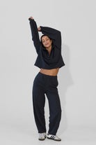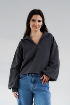 To minimalistyczna bluza, która nabiera charakteru za sprawą formy i kilku nieszablonowych rozwiązań, dlatego świetnie sprawdzi się zarówno na co dzień, jak i w bardziej stylowych, miejskich zestawach. My nosimy ją do naszych dżinsów Suzy, a gdy chcemy poczuć się jeszcze bardziej komfortowo zestawiamy z dresami Monica.