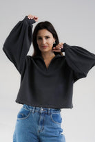 Są takie bluzy, które poza wygodą, przemycają nutę nonszalancji i sięgają po bardzo kobiece akcenty. Tak właśnie jest z tą bluzą. Celeste to esencja komfortu w lekkiej i otulającej formie. Ma swobodny, nieco oversizowy fason z subtelnie opadającą linią ramion i szerokimi, bufiastymi rękawami zakończonymi ściągaczem. Dzięki temu układa się miękko i pięknie pracuje przy każdym ruchu.