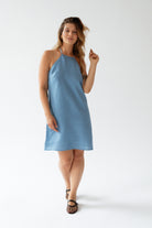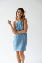 Pełna wdzięku sukienka Mare o prostym, swobodnym kroju, który świetnie odnajdzie się w letnie dni. Dekolt typu halter pięknie podkreśla linię ramion, a delikatne, cienkie ramiączka wiązane na szyi przykuwają spojrzenie, eksponując plecy. Do tego wygodna długość do kolan, która pozwala czuć się w niej komfortowo przez cały dzień. Na koniec materiał - lekkości i subtelności w ruchu dodaje jej lniana tkanina w pięknych, letnich kolorach. Noście ją z sandałkami czy japonkami, a jeśli wymaga tego okazja dopełnijcie ją szpilkami. Kobiecy minimalizm w najlepszym wydaniu.