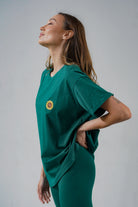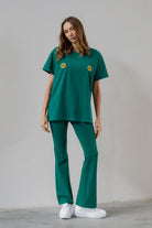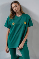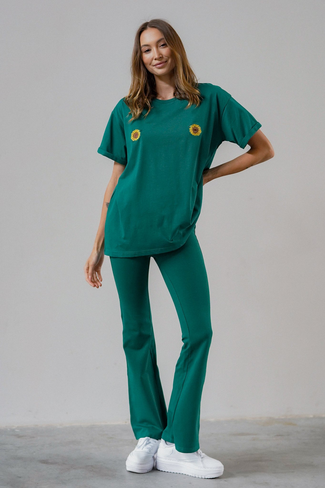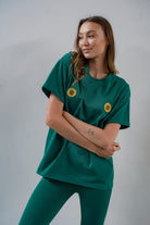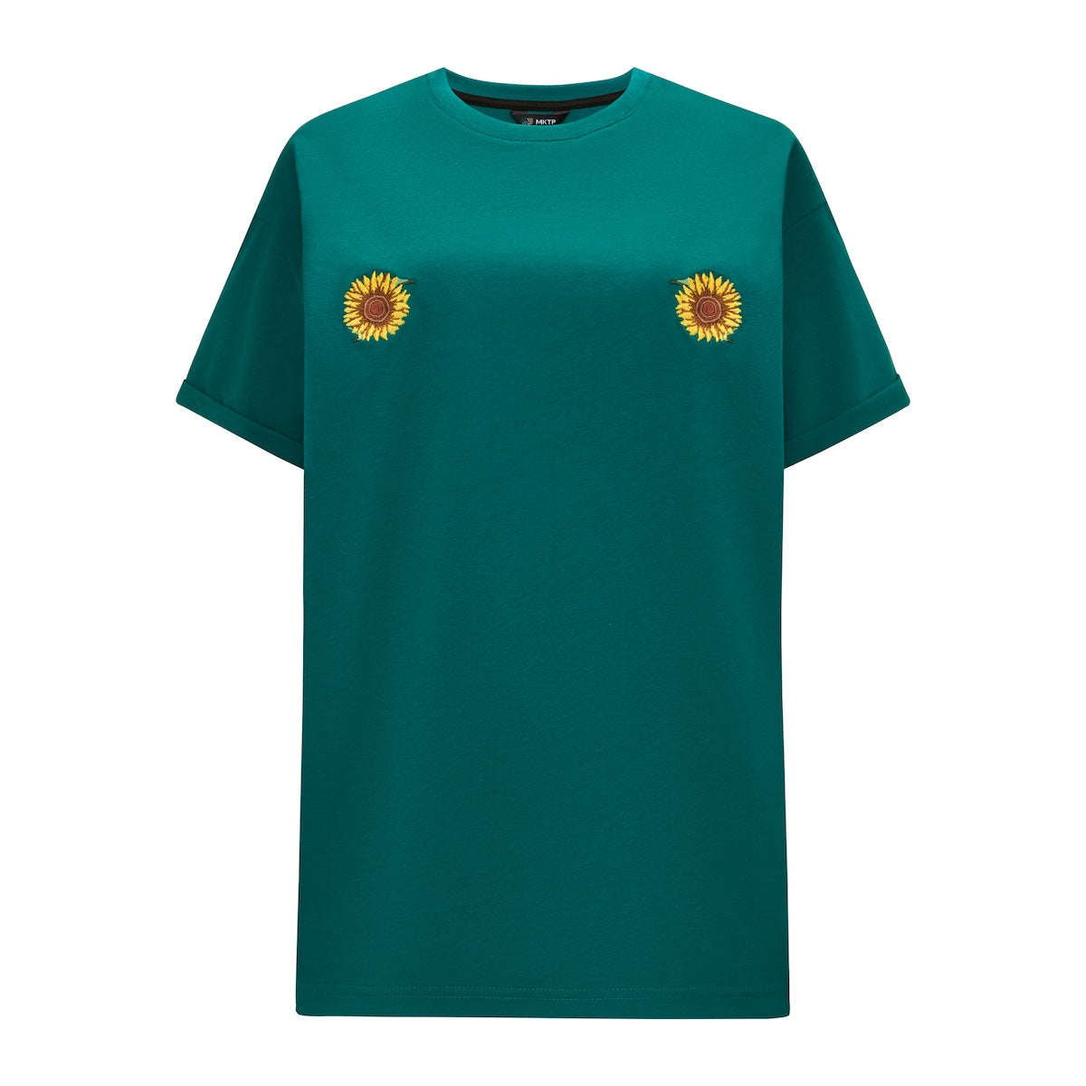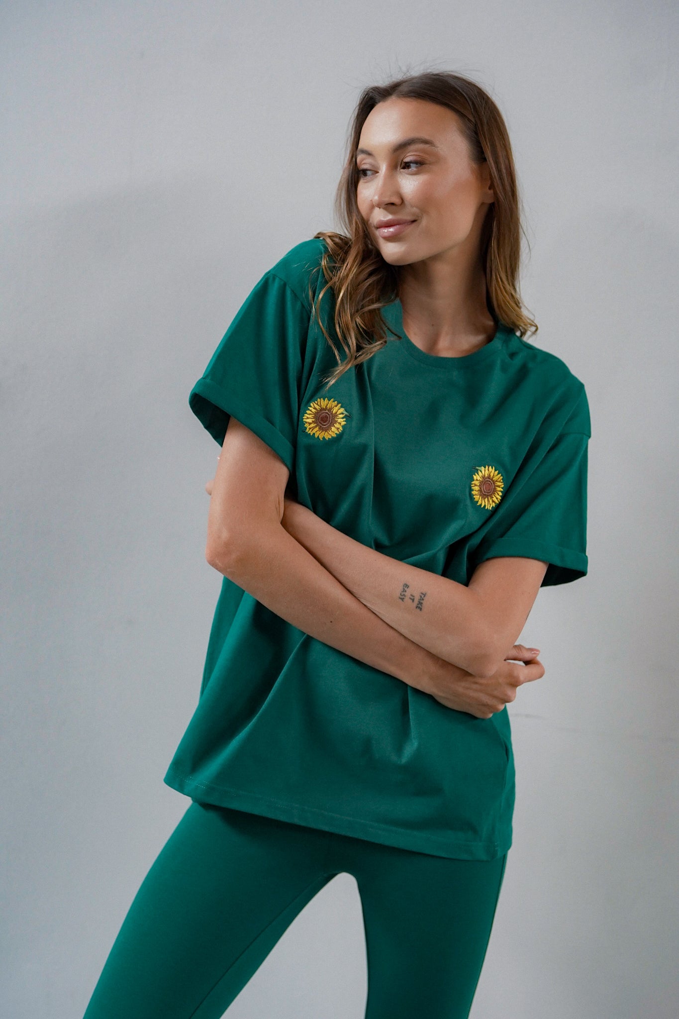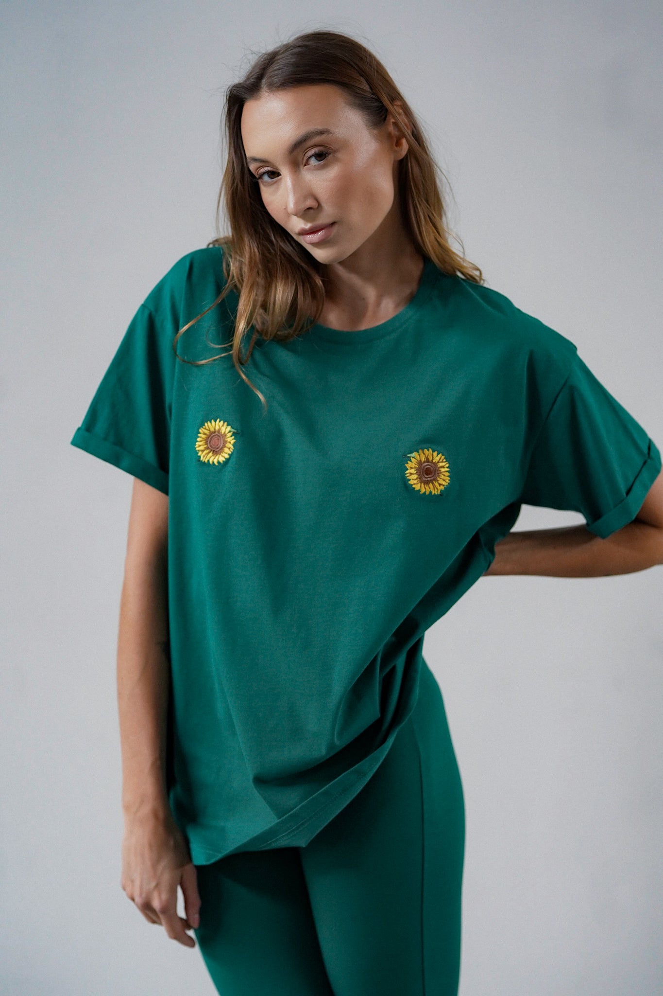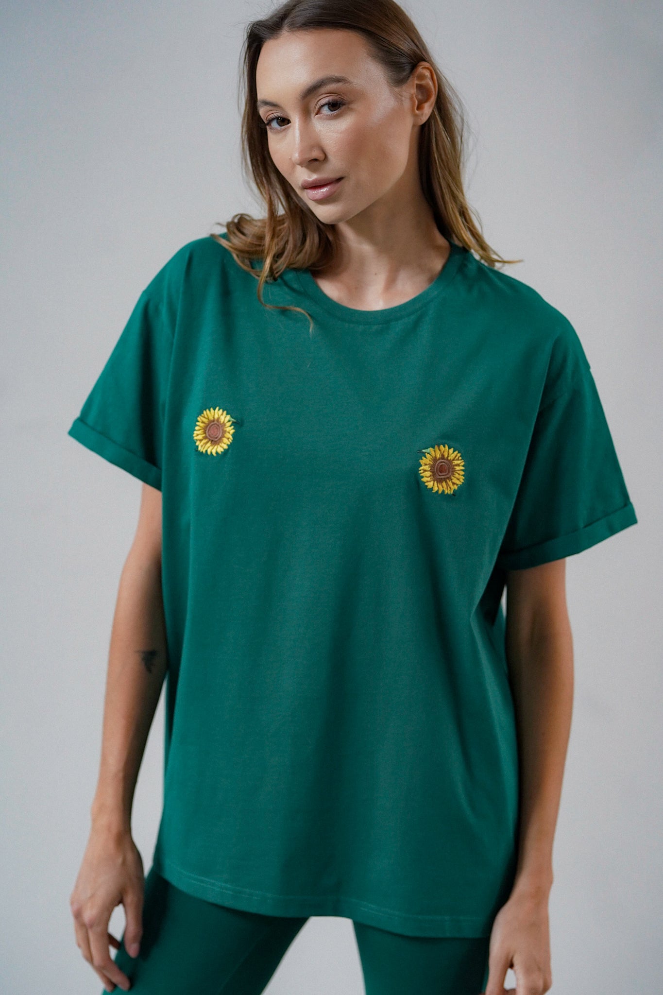 T-shirt Voilà Butelkowa Zieleń Słoneczniki