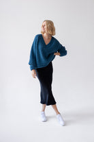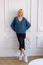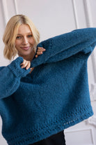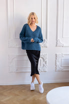 Prosty, ponadczasowy, ale z pięknymi detalami - sweter Wool Kiss zdecydowanie zyskuje przy bliższym poznaniu. Z dekoltem w serek ma klasyczny, nieco luźniejszy krój, dodający mu nonszalancji, pięknie układając się na sylwetce. Uroku dodaje mu ażurowa, bardzo kobieca aplikacja, którą zostały wykończone rękawy i dół. Długość do pasa sprawia, że jest uniwersalny i świetnie odnajdzie się w wielu stylizacjach.