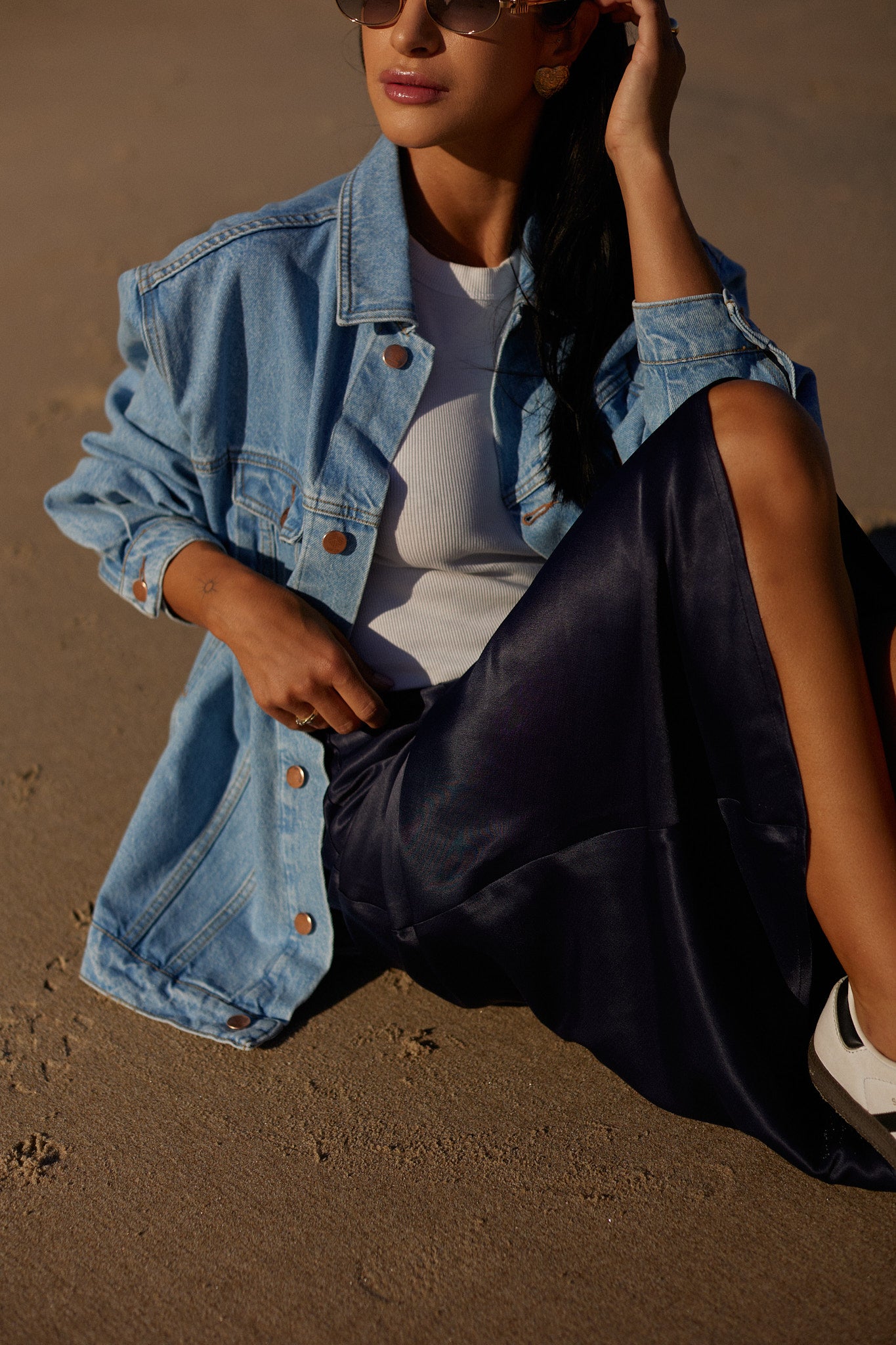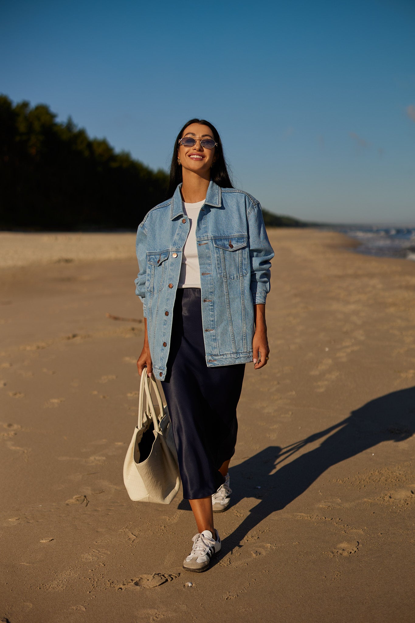Pierwsza w historii MKTP. Uniwersalna i ponadczasowa, dżinsowa kurtka Venice o swobodnym, oversizowym kroju wykonana w 100% z bawełny. Do tego długie, nieco szersze rękawy, zakończone mankietami zapinanymi na guzik i dwie kieszenie. Przełamie proste stylizacje, dodając im charakteru. Połączysz ją z letnimi sukienkami, ulubionymi spodniami czy t-shirtami, a dzięki swobodnemu fasonowi sprawdzi się również narzucona na nasze bluzy czy swetry.