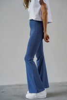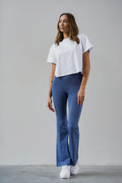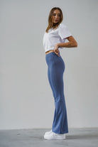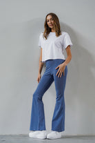 Bella to uniwersalne, ponadczasowe dzianinowe leginsy, ale w stylu lat 90’, bo z charakterystycznie rozszerzanymi, dzwonowatymi nogawkami.