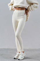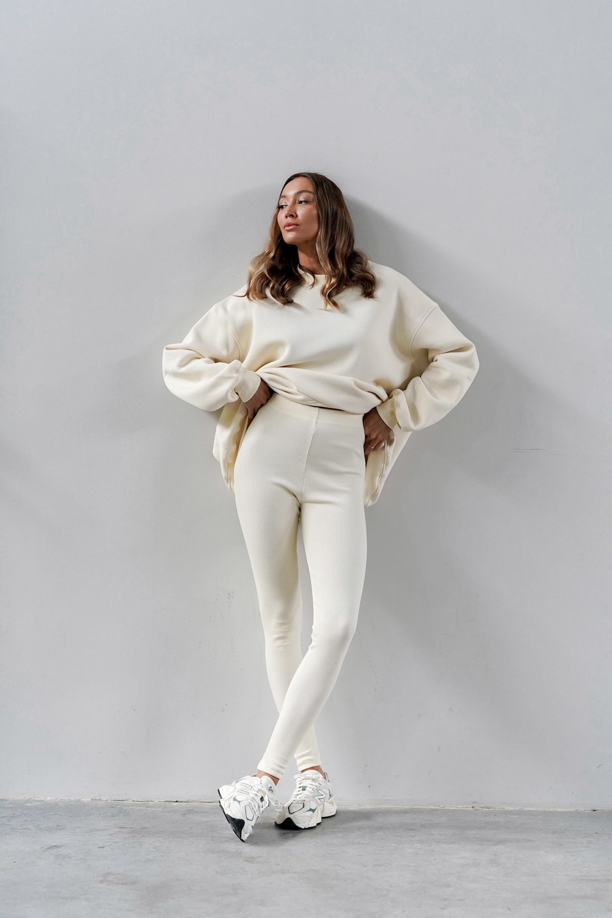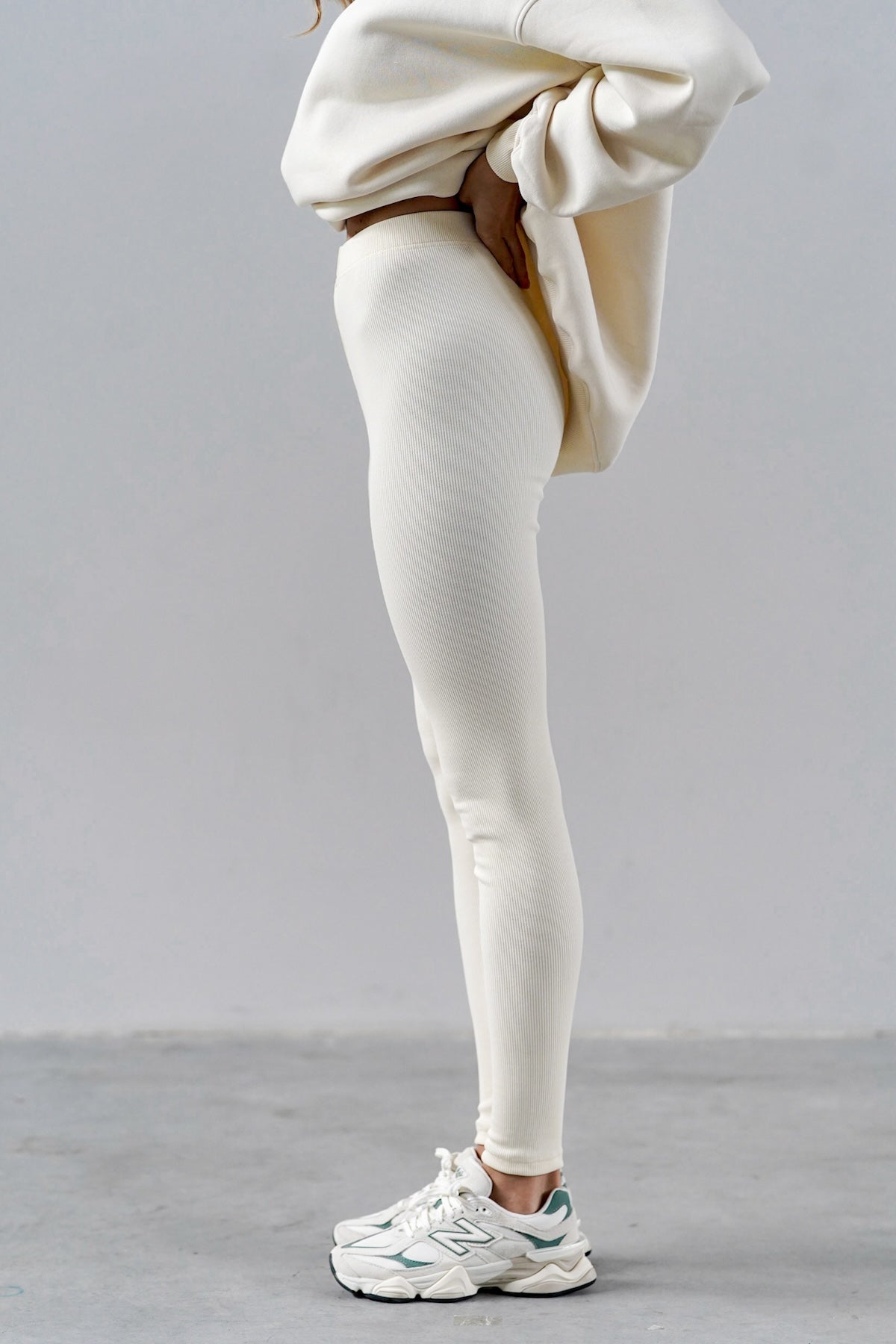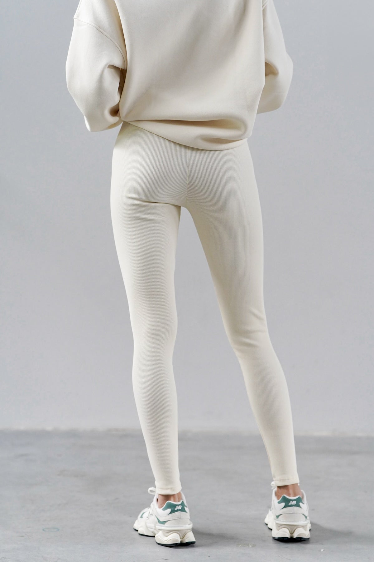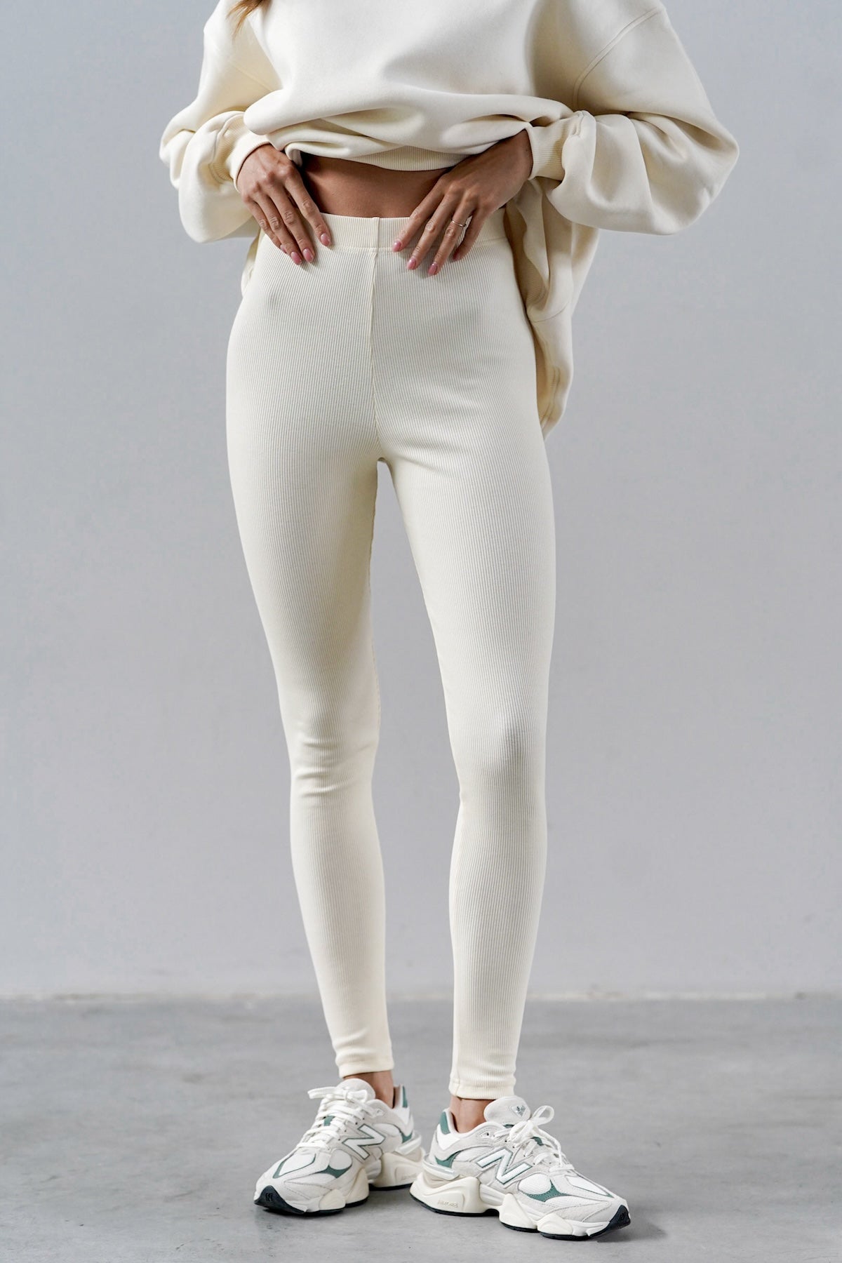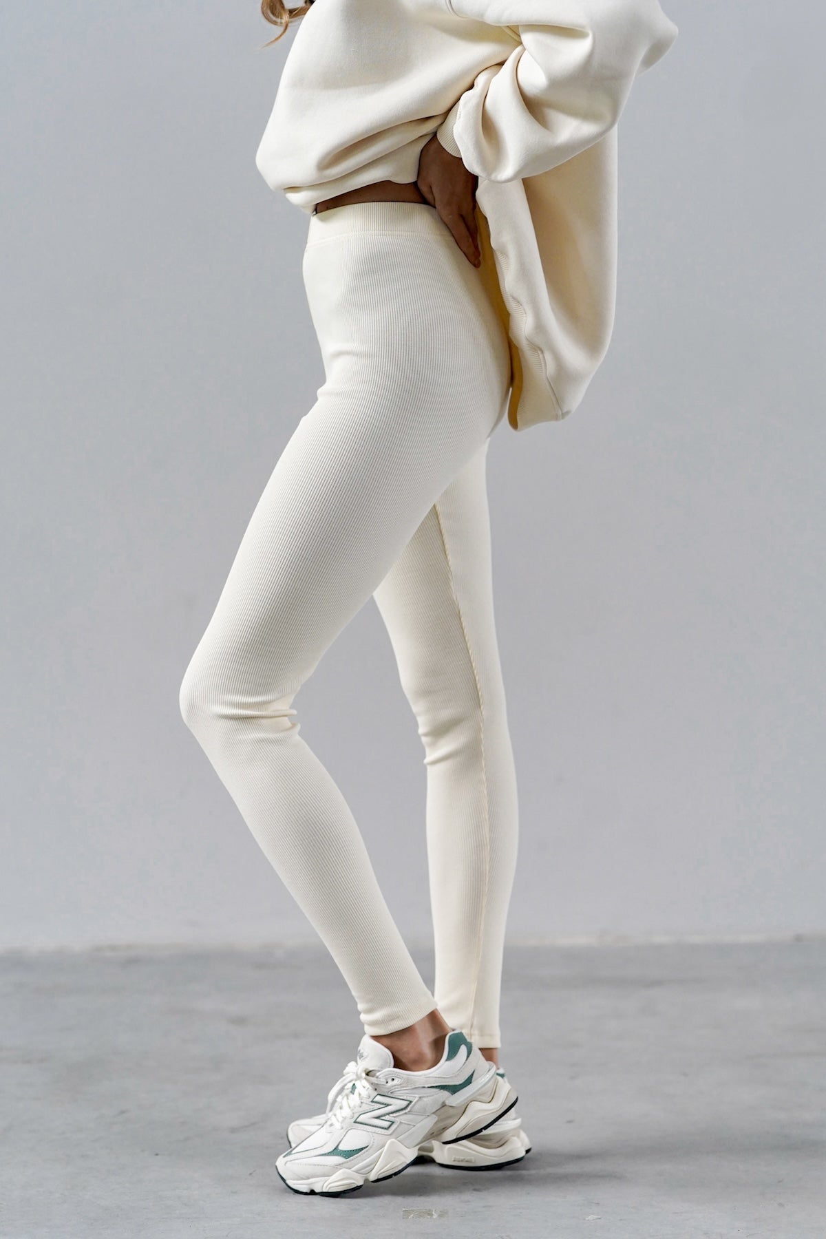 Prążkowana, elastyczna bawełna typu ściągacz nie tylko sprytnie wydłuża i wysmukla nogi za sprawą swej faktury, ale też idealnie dopasowuje się do ciała. Do tego dbałość o szczegóły i estetyczne wykończenia.