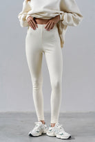 Podwyższany stan, zwieńczony szeroką, elastyczną gumą, ma nie tylko podkreślać talię, ale też zapewniać komfort noszenia i odpowiednio modelować sylwetkę. Nie ma tu miejsca na uwieranie, ściąganie się czy opinanie – o tym zapomnijcie, jednak w tym i zasługa samego materiału.