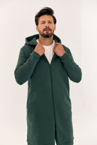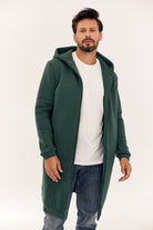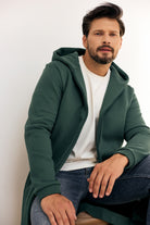 Nasz debiut w kwestii męskiej garderoby. Płaszczobluza ma dłuższy krój, który idealnie chroni przed pierwszymi chłodami, nie krępuje ruchów, a co najważniejsze jej prosta, dłuższa linia sprytnie wyciąga sylwetkę. Do tego wyposażona jest w głębokie, zapinane kieszenie po bokach i obszerny kaptur, dzięki czemu jest uniwersalna i praktyczna. Nie zapomniałyśmy też o podszewce, która dodaje jej elegancji i stawia wysoko poprzeczkę w kategorii idealnych (płaszczo)bluz!