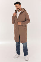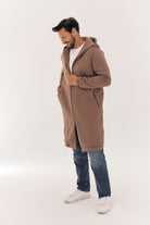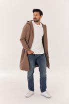 Nasz debiut w kwestii męskiej garderoby. Płaszczobluza ma dłuższy krój, który idealnie chroni przed pierwszymi chłodami, nie krępuje ruchów, a co najważniejsze jej prosta, dłuższa linia sprytnie wyciąga sylwetkę. Do tego wyposażona jest w głębokie, zapinane kieszenie po bokach i obszerny kaptur, dzięki czemu jest uniwersalna i praktyczna. Nie zapomniałyśmy też o podszewce, która dodaje jej elegancji i stawia wysoko poprzeczkę w kategorii idealnych (płaszczo)bluz!