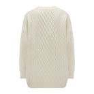 Mięsisty, piękny splot typu warkocz robi całą robotę – dodaje oryginalnej struktury, trzyma formę i pięknie układa się na sylwetce, a swobodny, zdecydowanie dłuższy fason idealnie go dopełnia.
