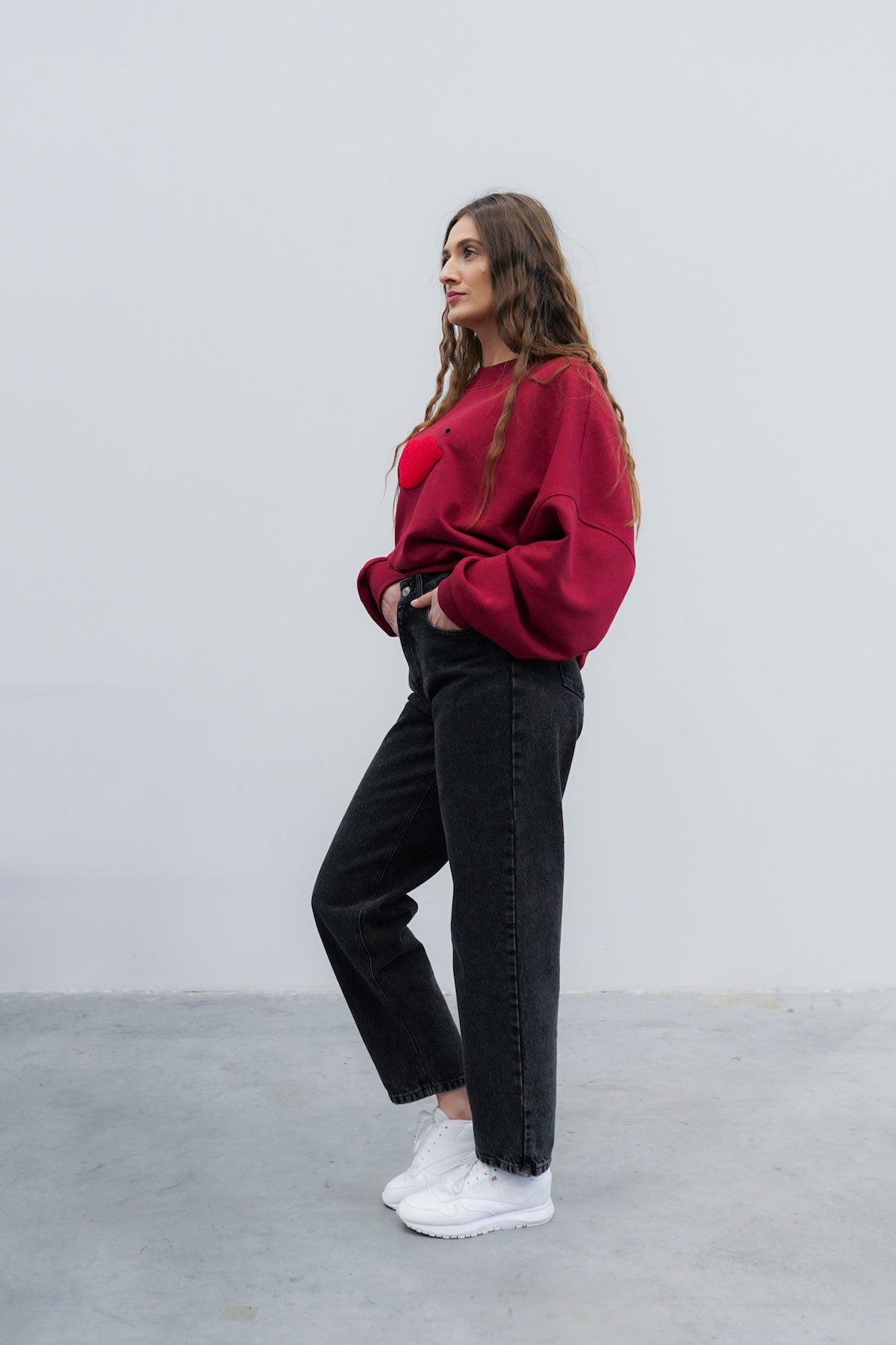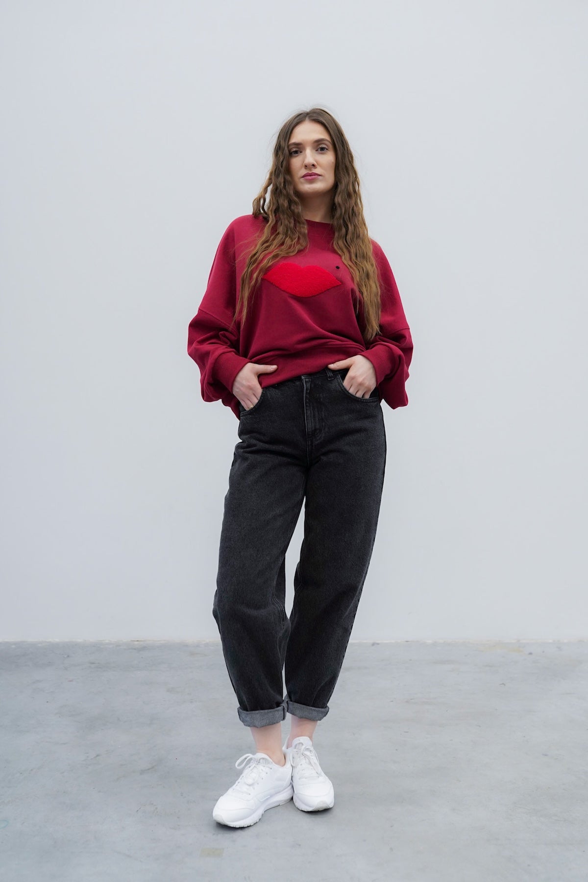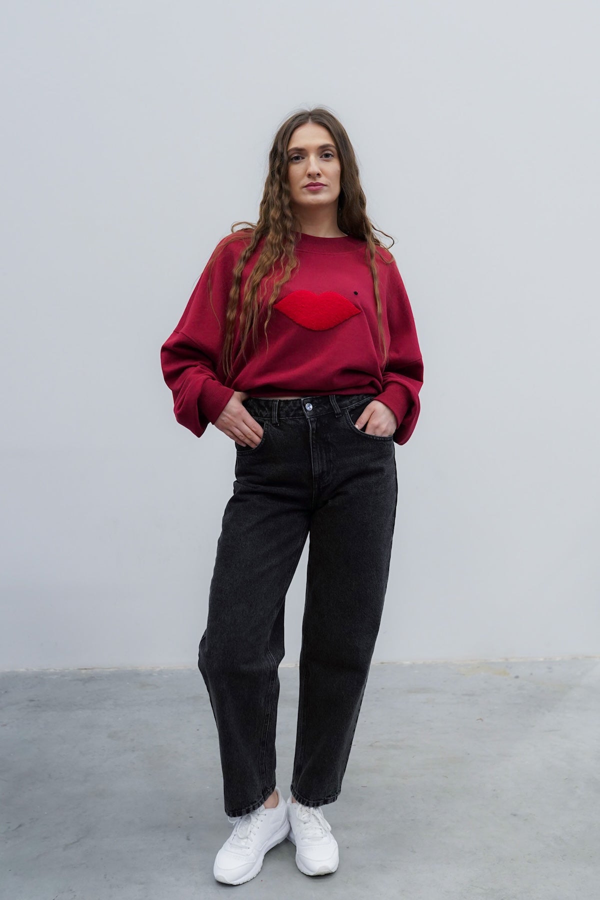 Spodnie dżinsowe typu baggy, stworzone z myślą o wygodzie i stylu, które łączą w sobie swobodę z wyrazistym charakterem. Ich luźny krój zapewnia komfort noszenia i nonszalancki look, a wysoki stan podkreśla talię i utrzymuje idealne proporcje. Szerokie nogawki miękko opadają, tworząc lekko oversize’owy efekt, doskonale współgrający z casualowymi stylizacjami. Całość dopełniają mocne, wyraziste przeszycia oraz charakterystyczny detal – skórka z logo w intensywnym różowym kolorze, która przełamuje klasykę i dodaje spodniom unikalnego akcentu. Idealny wybór dla osób, które cenią prostotę, ale lubią wyróżniać się z tłumu. Kieszenie też są oczywiście.