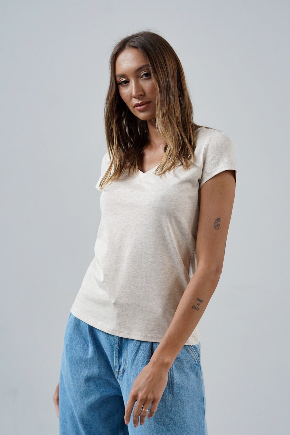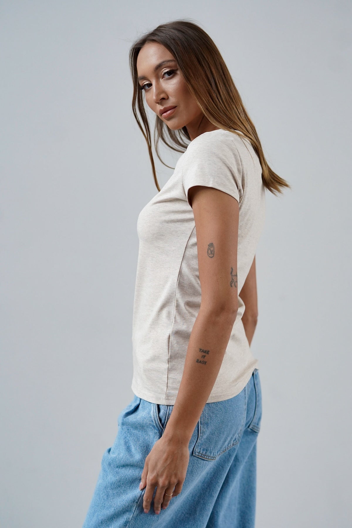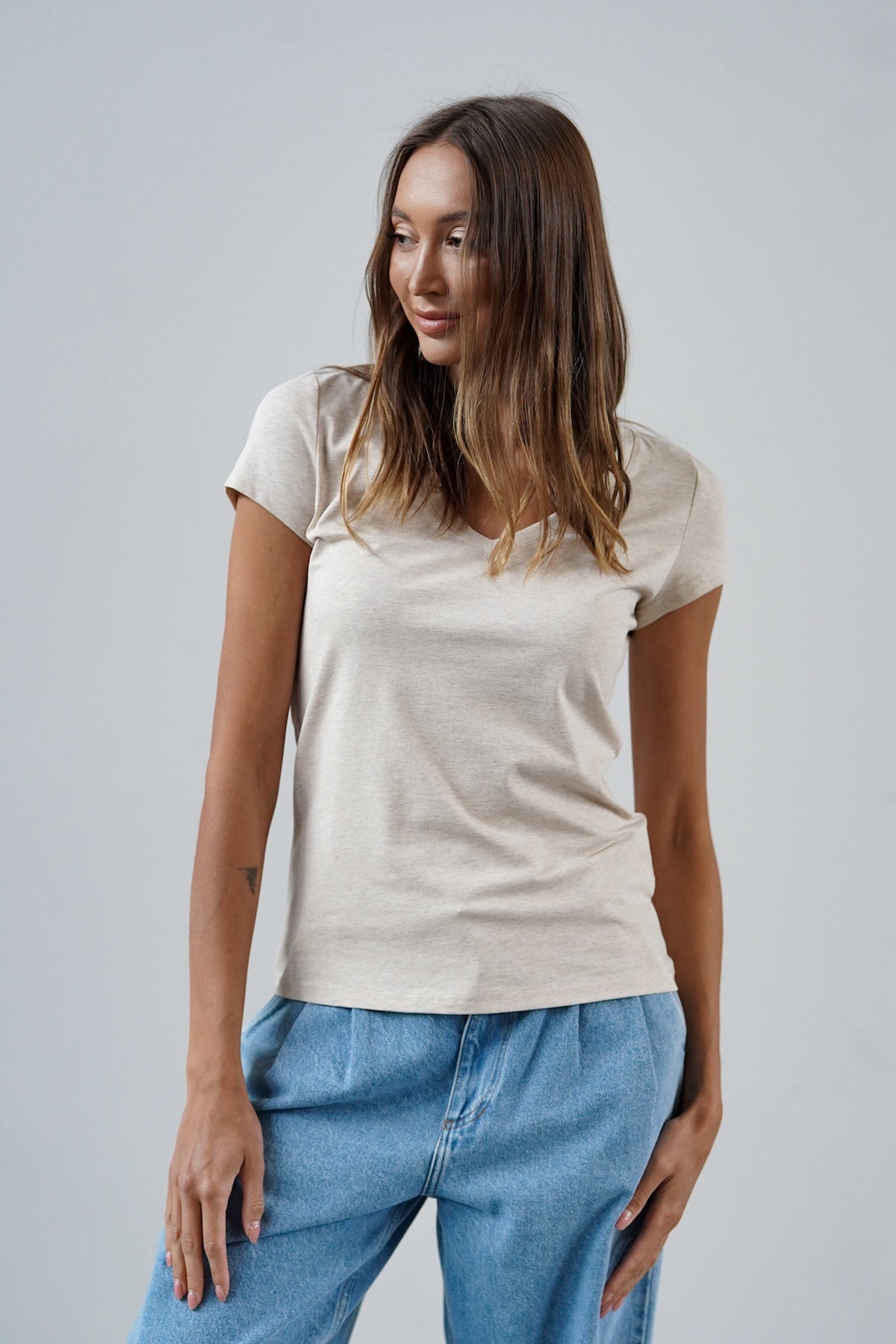 T-shirt Perfect Lines Beż Melanż