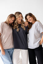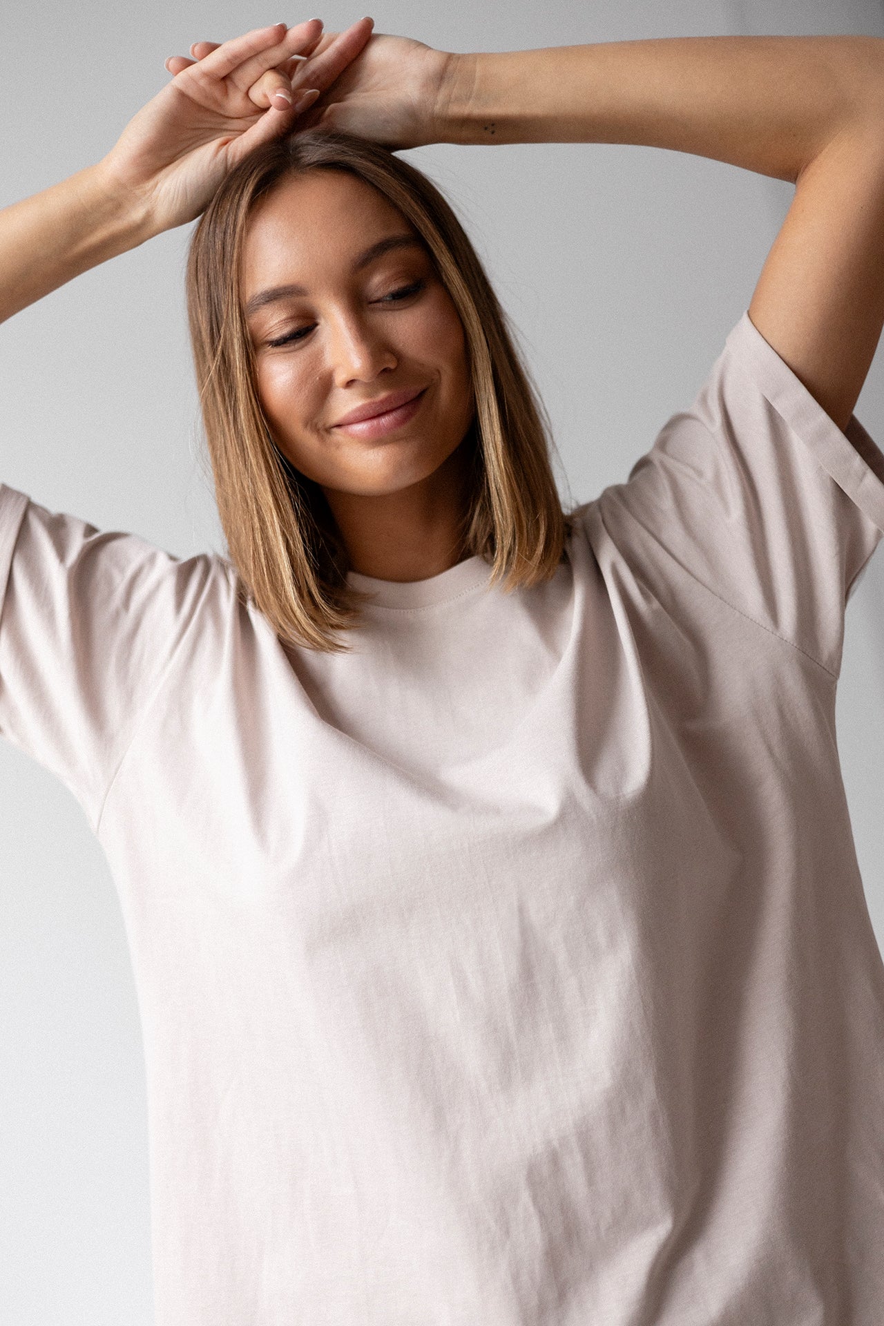 Ten model znakomicie odnajdzie się w różnych stylizacjach. Z leginsami czy dresami będzie udaną propozycją na popołudnie spędzone na kanapie, a z dżinsami i ramoneską możecie porwać go na spotkanie ze znajomymi. Po prostu Voilà - z nim zawsze jesteście gotowe do wyjścia, nasza idealna koszulka na każdy dzień.