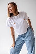 T-shirt Crop-Voilà Biały Pomarańcze