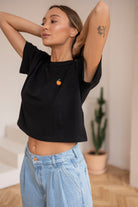 T-shirt Crop-Voilà Czarny Pomarańcze