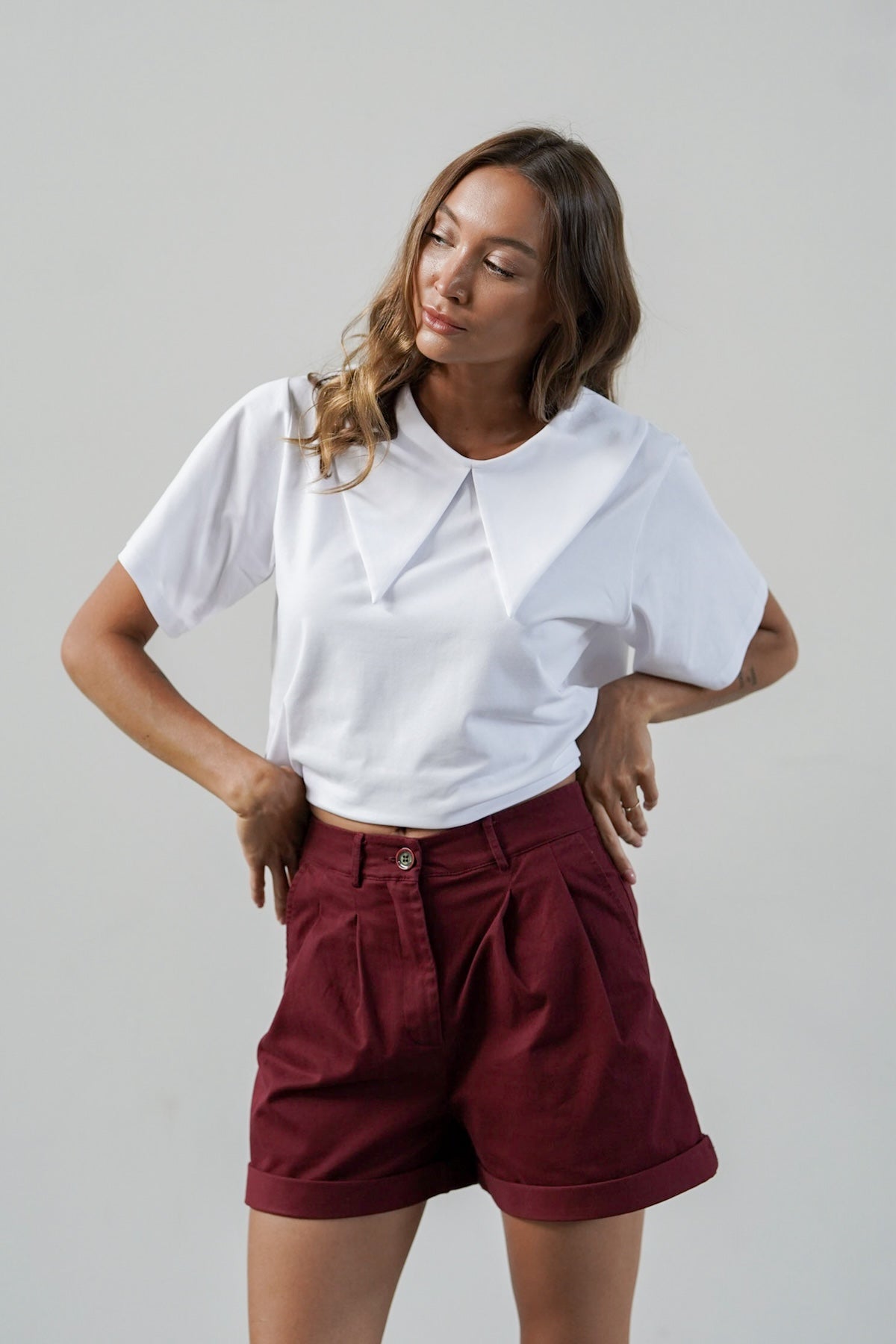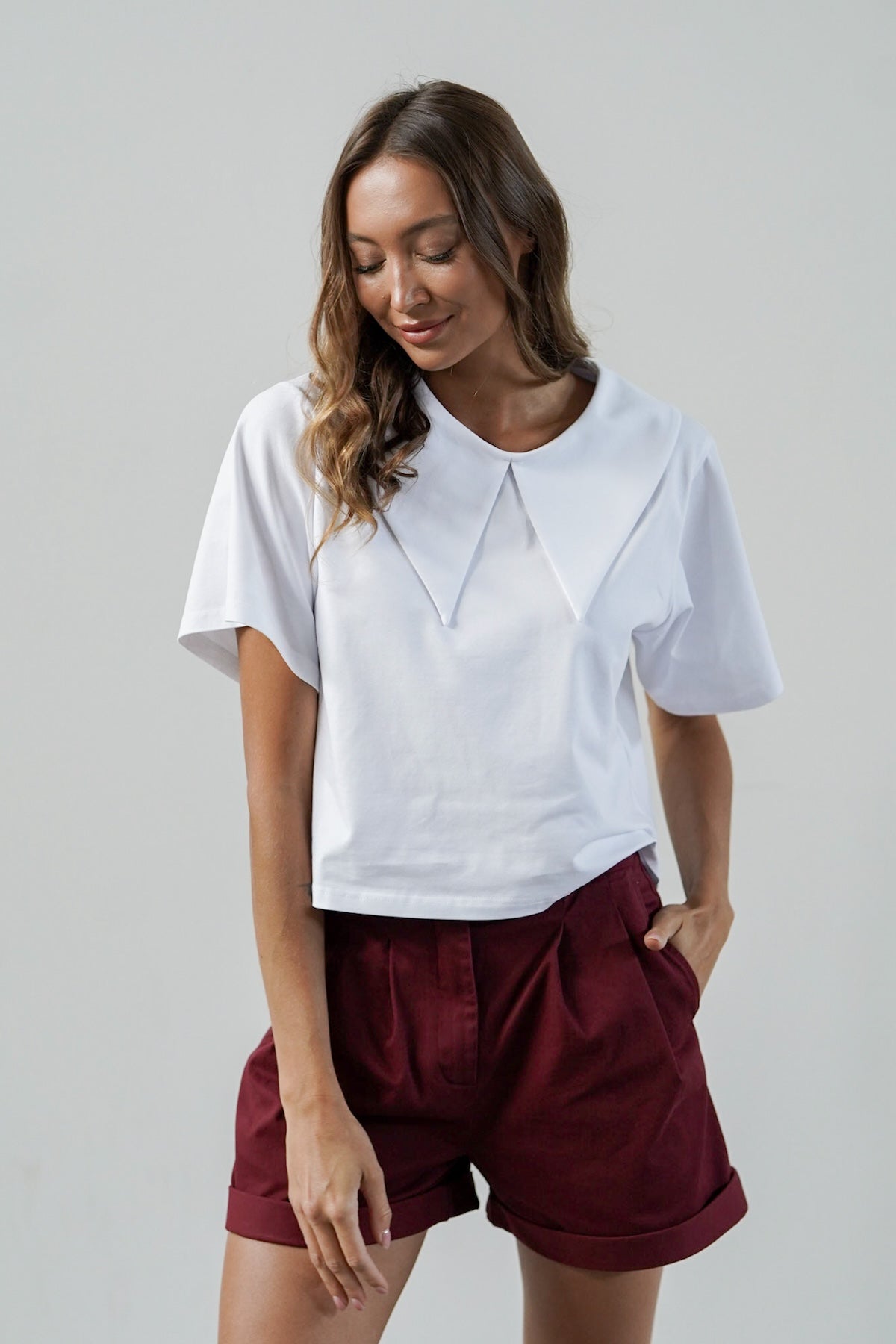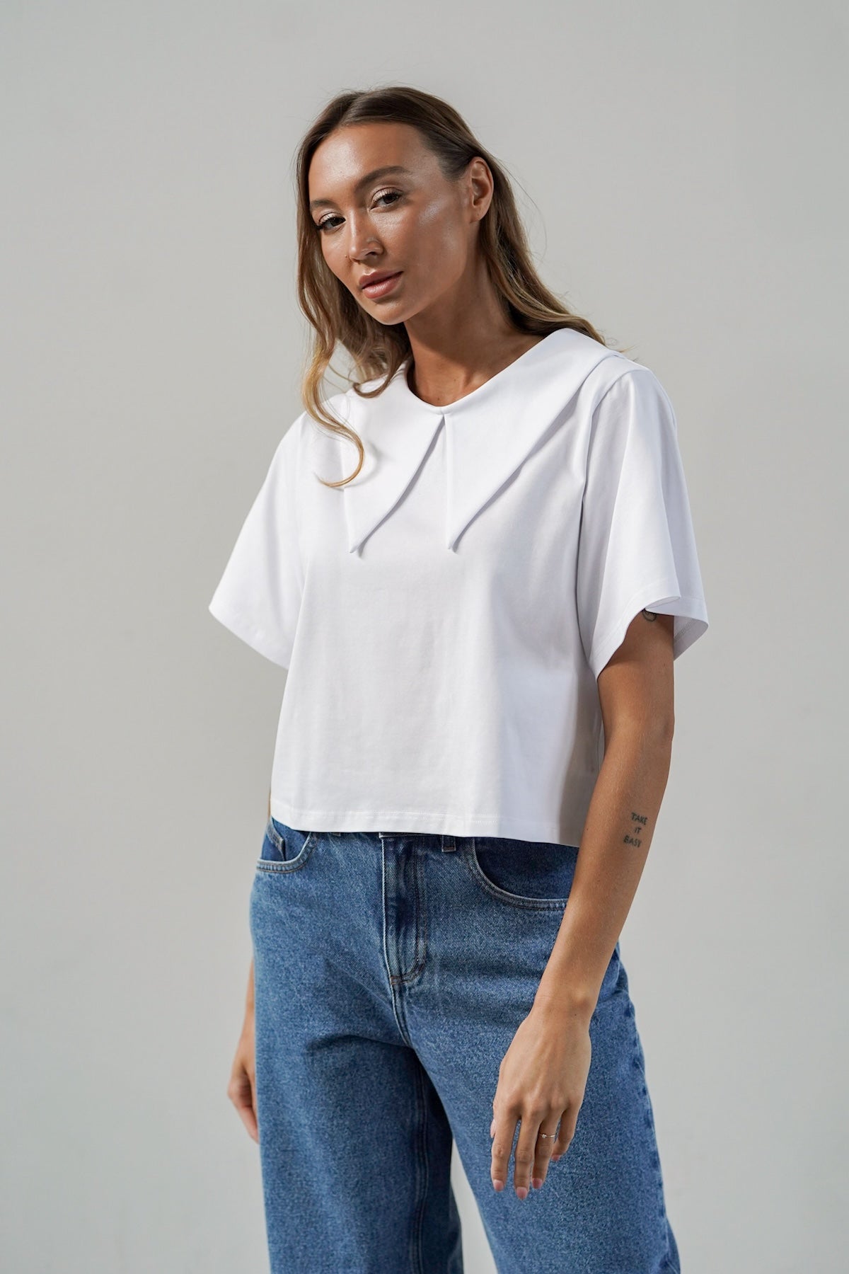 Koszulka Audrey to subtelne połączenie klasyki z nowoczesnym luzem. Jej charakterystycznym elementem jest dekoracyjny, wydłużony kołnierz o wyrazistej formie, który dodaje całości dziewczęcego uroku i wyróżnia ją w tłumie innych bluzek. Swobodniejszy krój zapewnia komfort noszenia i idealnie układa się na sylwetce, podkreślając codzienny, niezobowiązujący styl. To propozycja dla osób, które cenią detal i wygodę w minimalistycznym wydaniu.