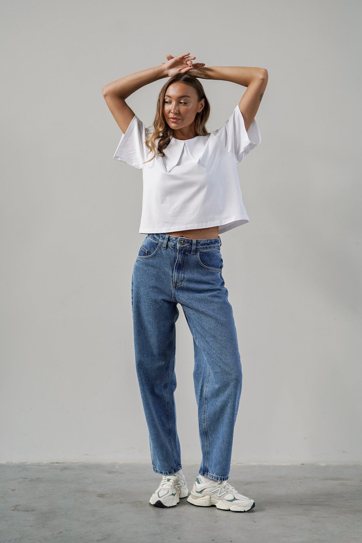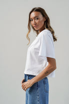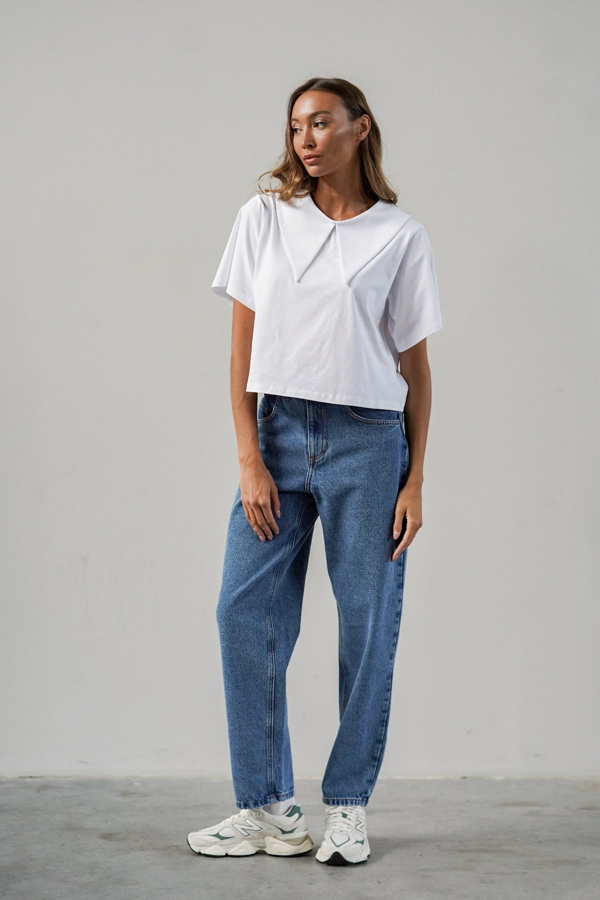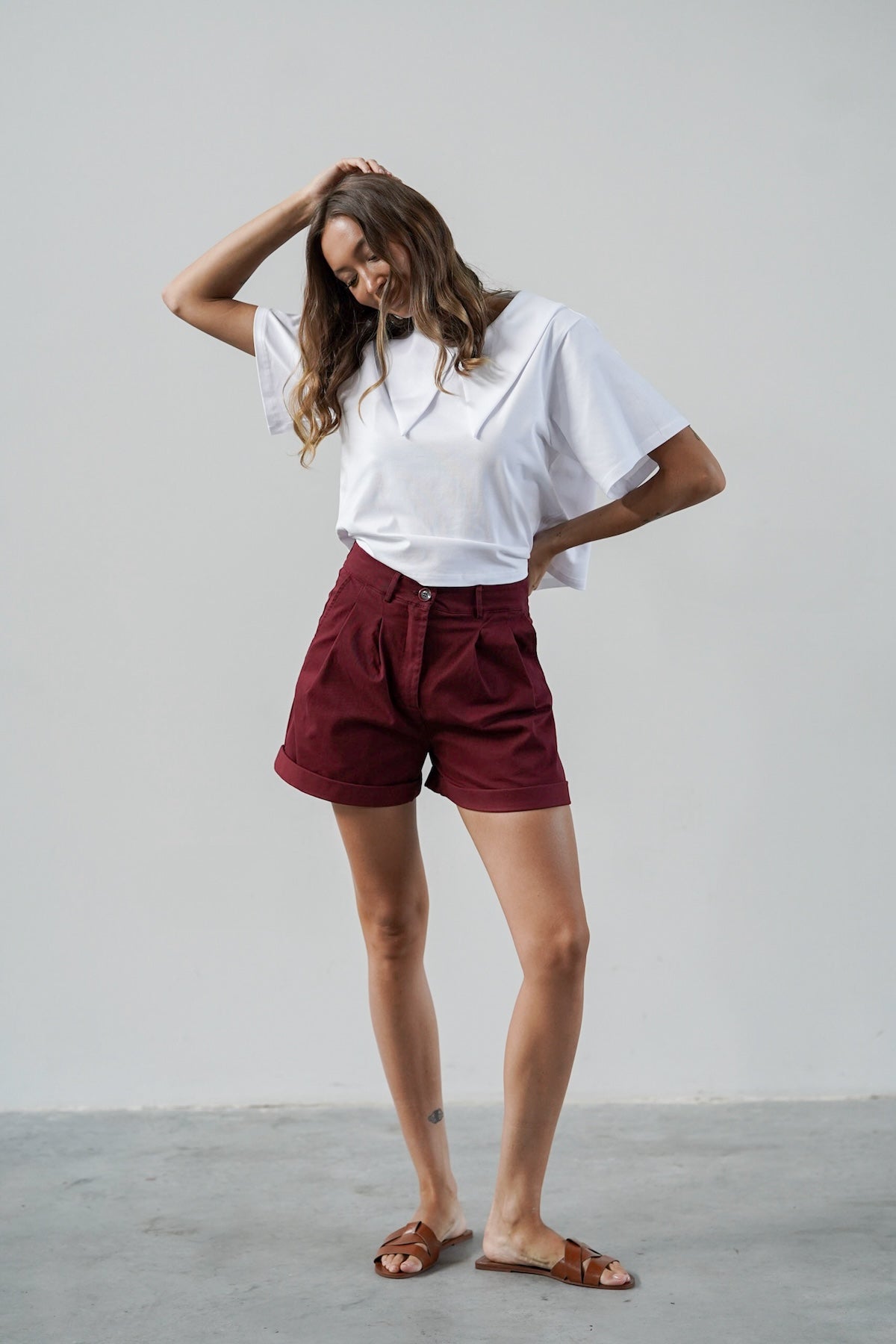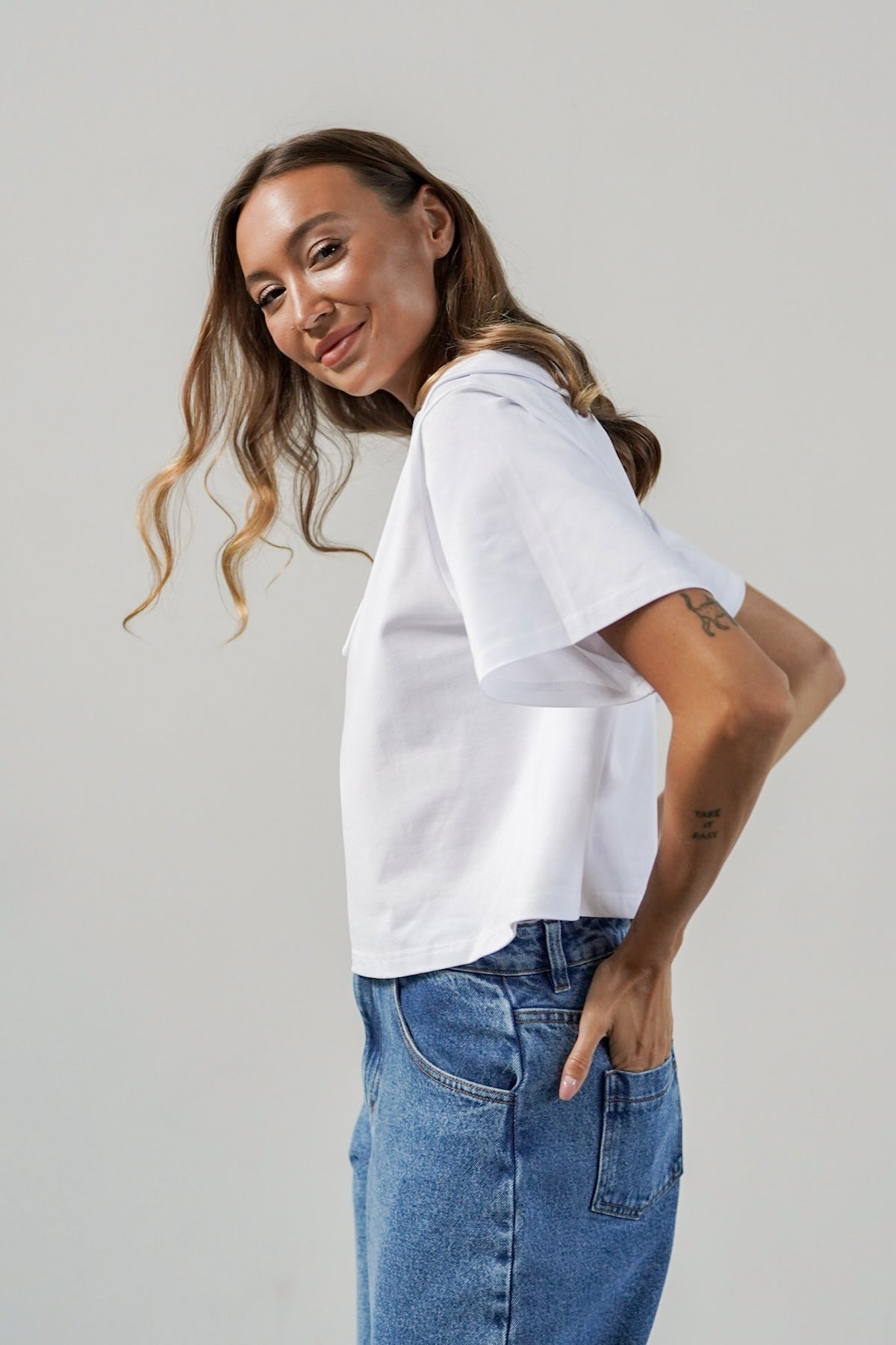 Koszulka Audrey to subtelne połączenie klasyki z nowoczesnym luzem. Jej charakterystycznym elementem jest dekoracyjny, wydłużony kołnierz o wyrazistej formie, który dodaje całości dziewczęcego uroku i wyróżnia ją w tłumie innych bluzek. Swobodniejszy krój zapewnia komfort noszenia i idealnie układa się na sylwetce, podkreślając codzienny, niezobowiązujący styl. To propozycja dla osób, które cenią detal i wygodę w minimalistycznym wydaniu.