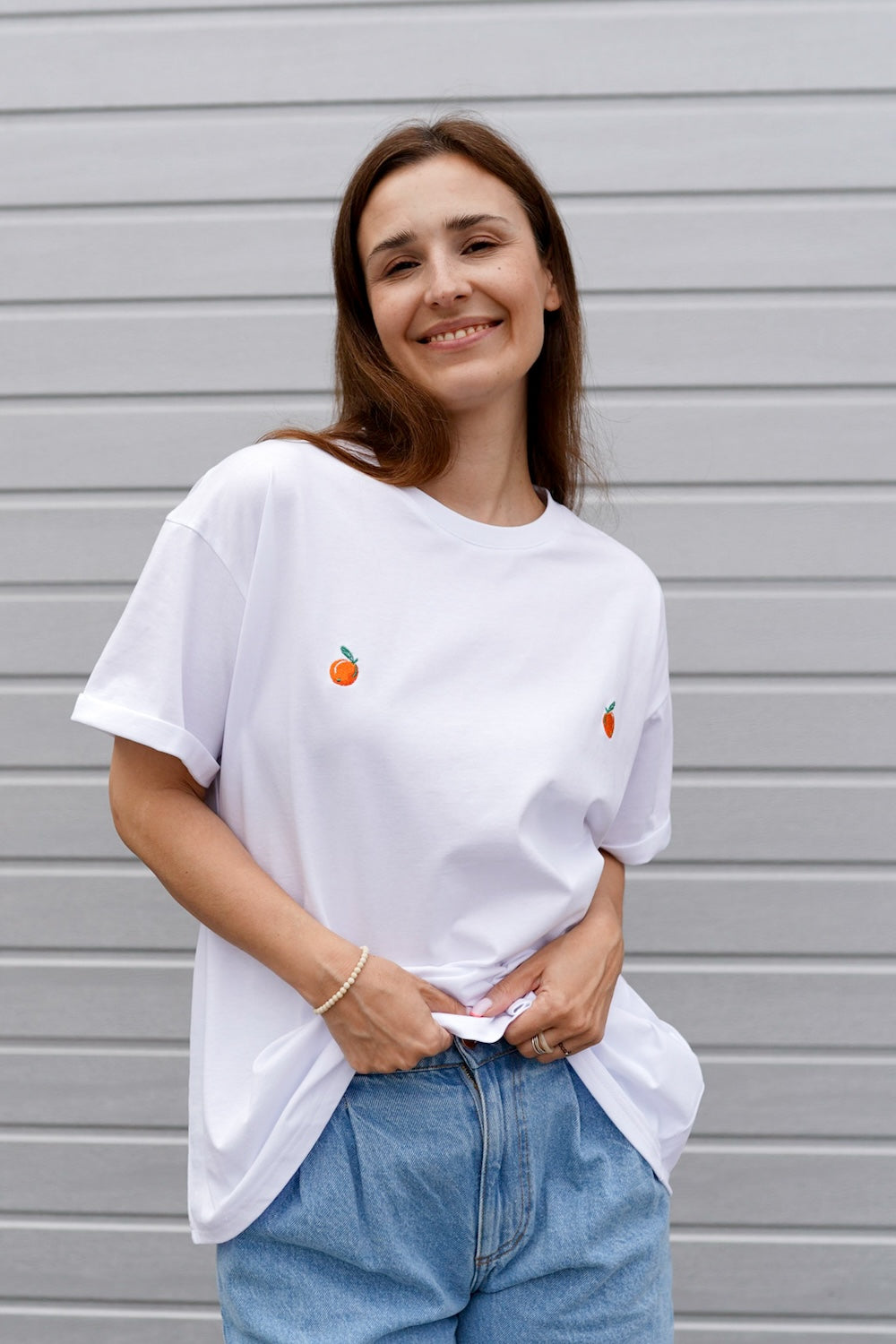 Ten model znakomicie odnajdzie się w różnych stylizacjach. Z leginsami czy dresami będzie udaną propozycją na popołudnie spędzone na kanapie, a z dżinsami i ramoneską możecie porwać go na spotkanie ze znajomymi. Po prostu Voilà - z nim zawsze jesteście gotowe do wyjścia, nasza idealna koszulka na każdy dzień.