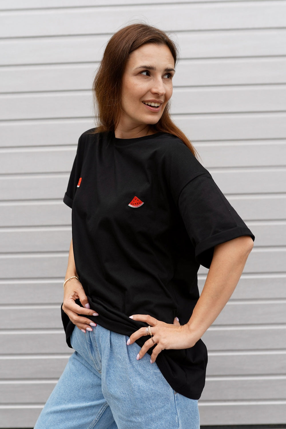 Ten model znakomicie odnajdzie się w różnych stylizacjach. Z leginsami czy dresami będzie udaną propozycją na popołudnie spędzone na kanapie, a z dżinsami i ramoneską możecie porwać go na spotkanie ze znajomymi. Po prostu Voilà - z nim zawsze jesteście gotowe do wyjścia, nasza idealna koszulka na każdy dzień.