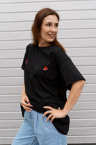 Ma obszerny, luźniejszy krój, delikatnie wywinięte rękawki, a samo wykończenie zostało oczywiście odpowiednio dopieszczone. Wykonany jest z wysokiej jakości, przewiewnej bawełny o gramaturze 180, która zapewni Wam komfort noszenia.