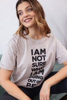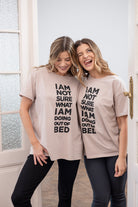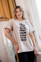 T-shirt Voila Lazy Days z napisem I’m not sure what I’m doing out of bed - jeśli chcecie wysłać światu sygnał, że mimo ciężkiego czasu czy chwili słabości, stawiacie czoła rzeczywistości i dajecie radę na własnych zasadach, bo nigdy nie wiadomo, kiedy może spotkać nas coś niesamowitego, a bieg zdarzeń może się odmienić.