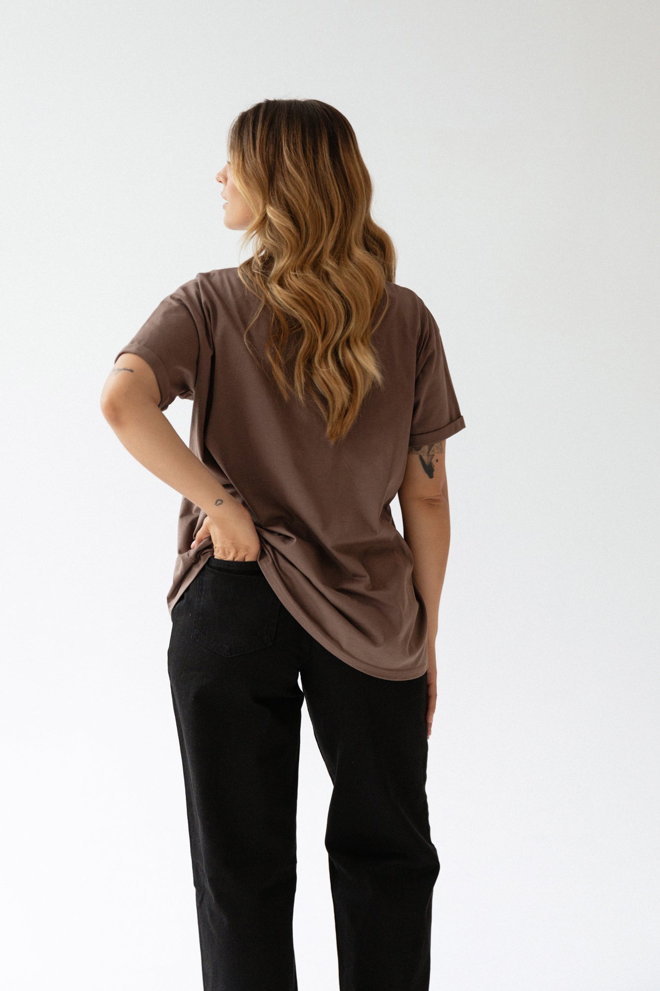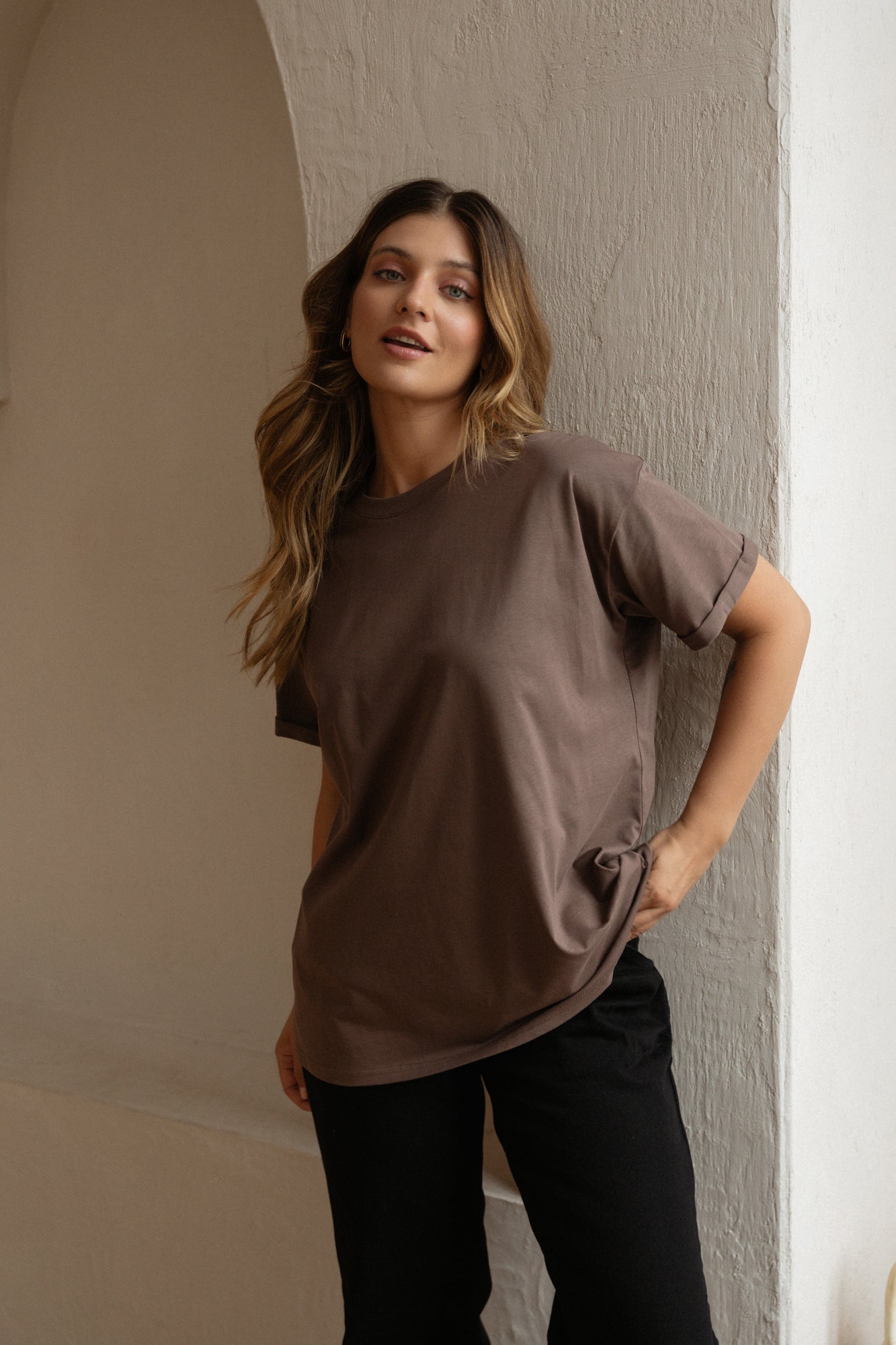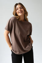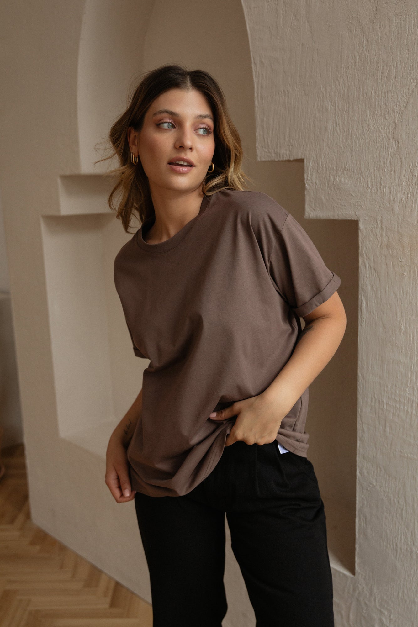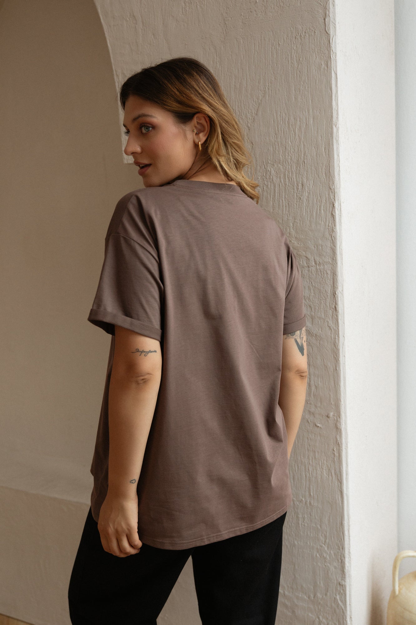Ten model znakomicie odnajdzie się w różnych stylizacjach. Z leginsami czy dresami będzie udaną propozycją na popołudnie spędzone na kanapie, a z dżinsami i ramoneską możecie porwać go na spotkanie ze znajomymi. Po prostu Voilà - z nim zawsze jesteście gotowe do wyjścia, nasza idealna koszulka na każdy dzień.