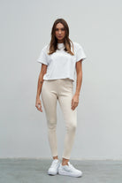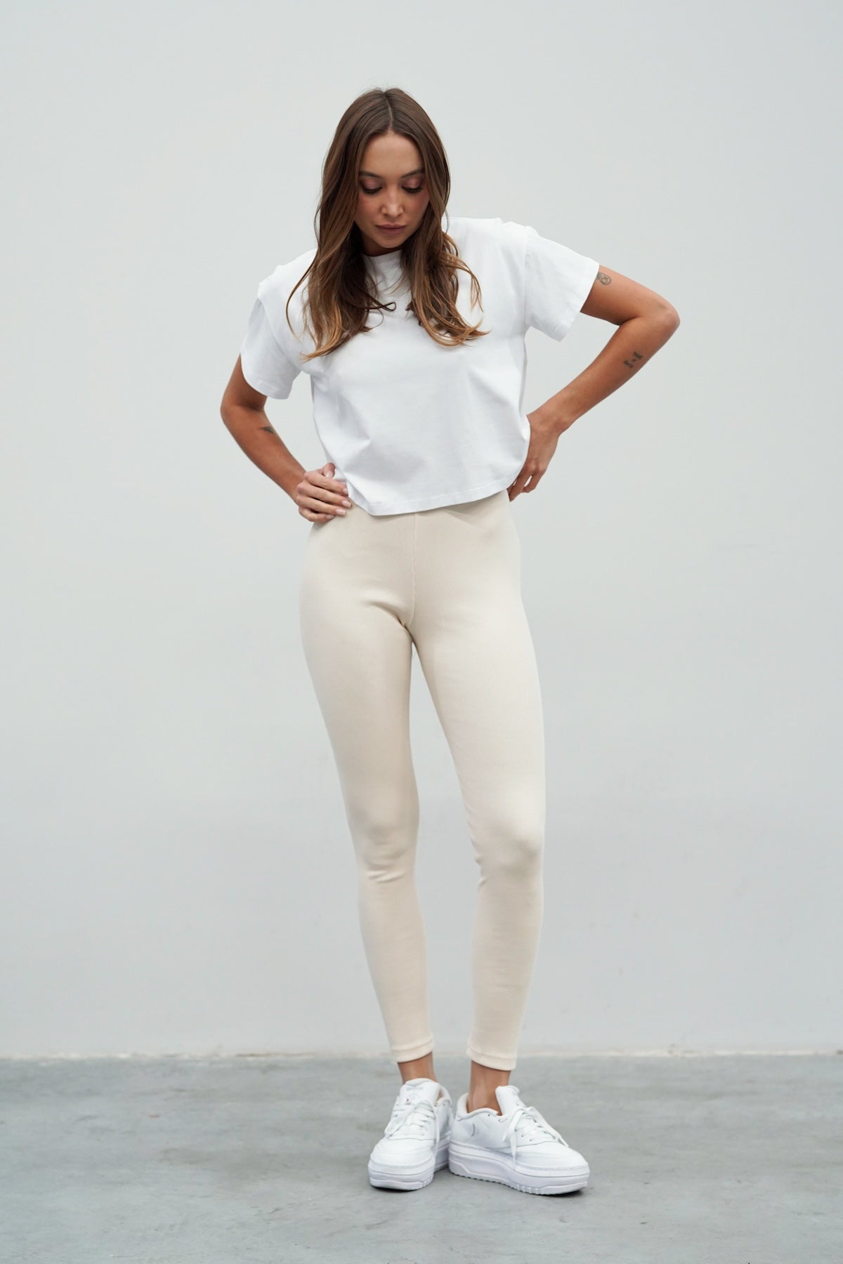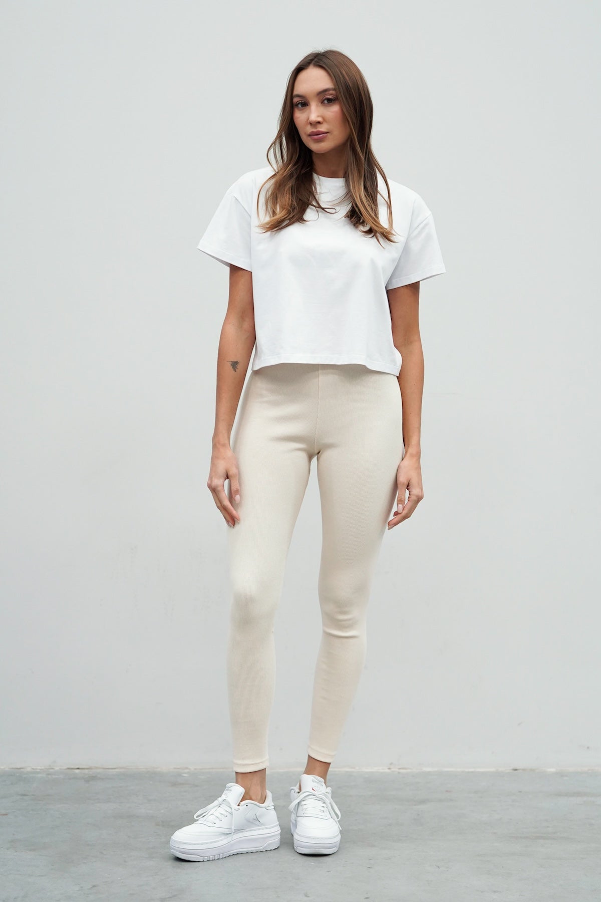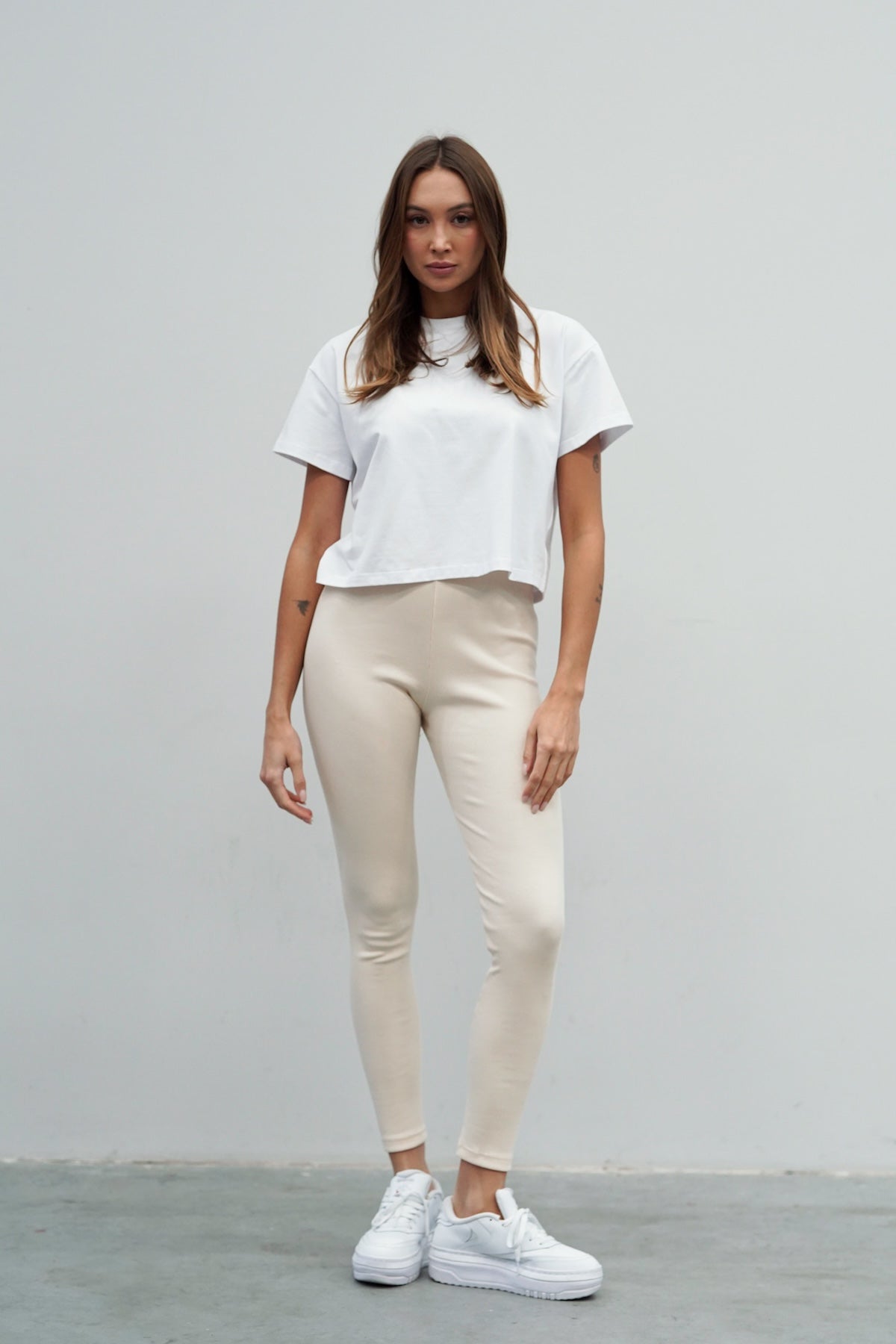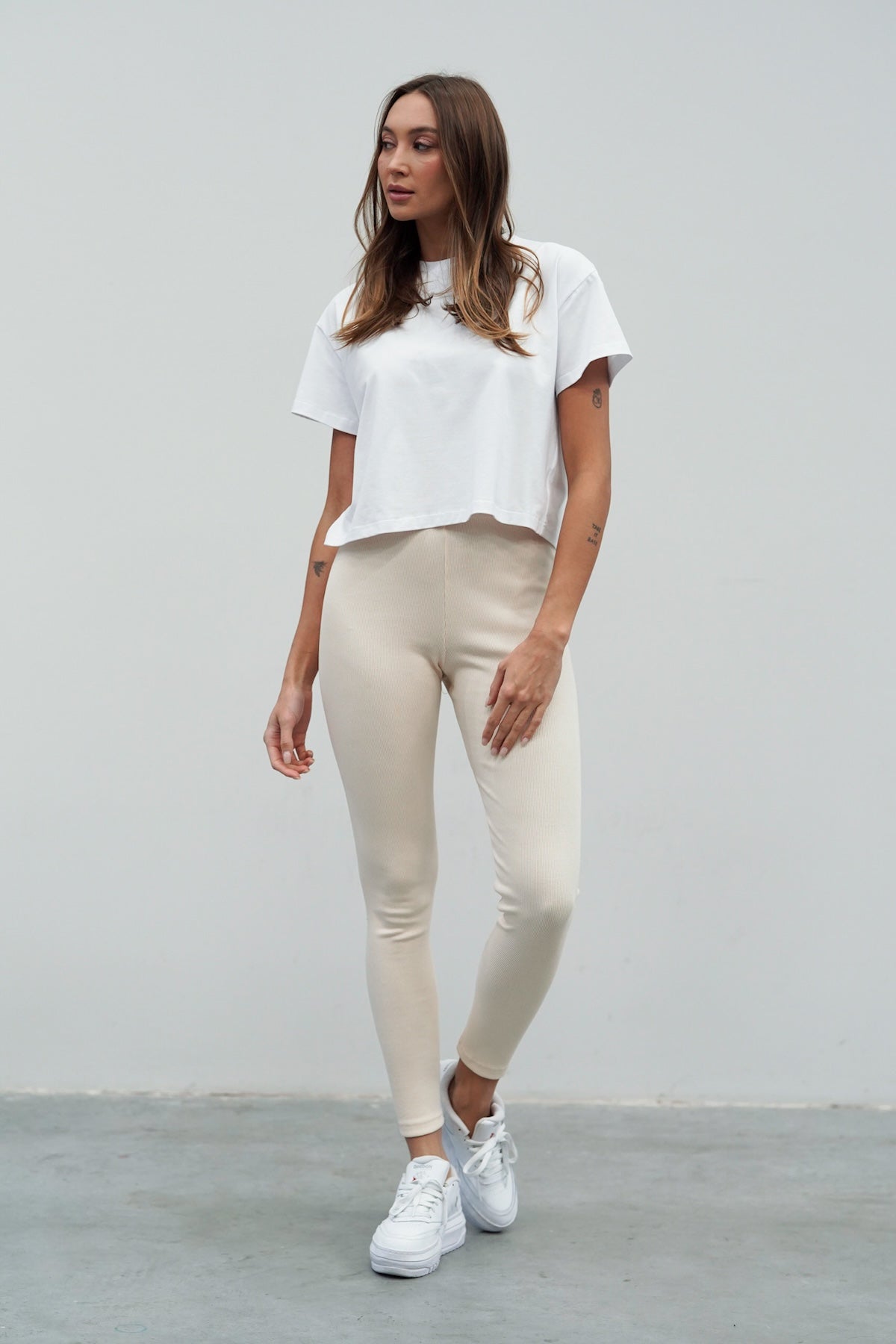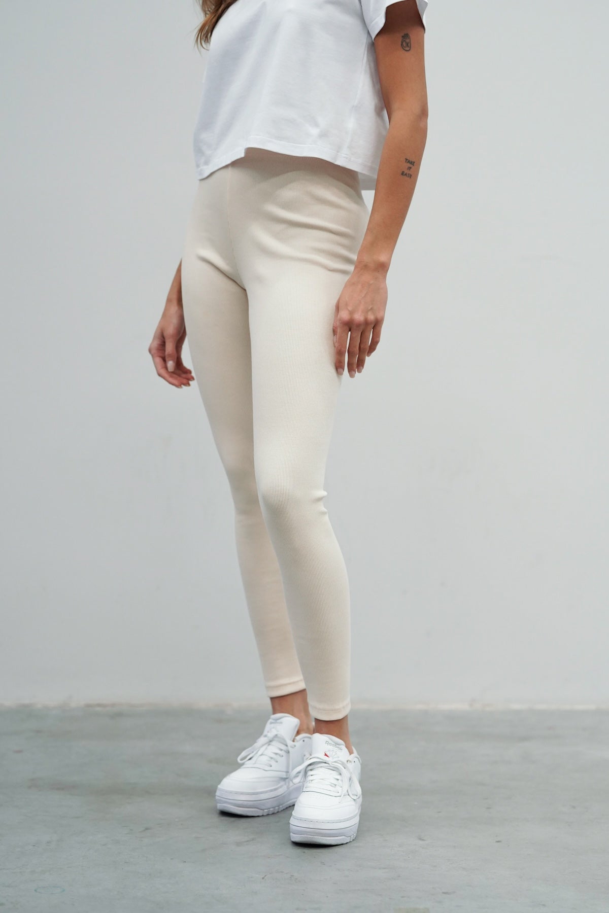 Ribbed, elastic cotton with a cuff not only cleverly lengthens and slims the legs thanks to its texture, but also fits perfectly to the body. Additionally, attention to detail and aesthetic finishes.