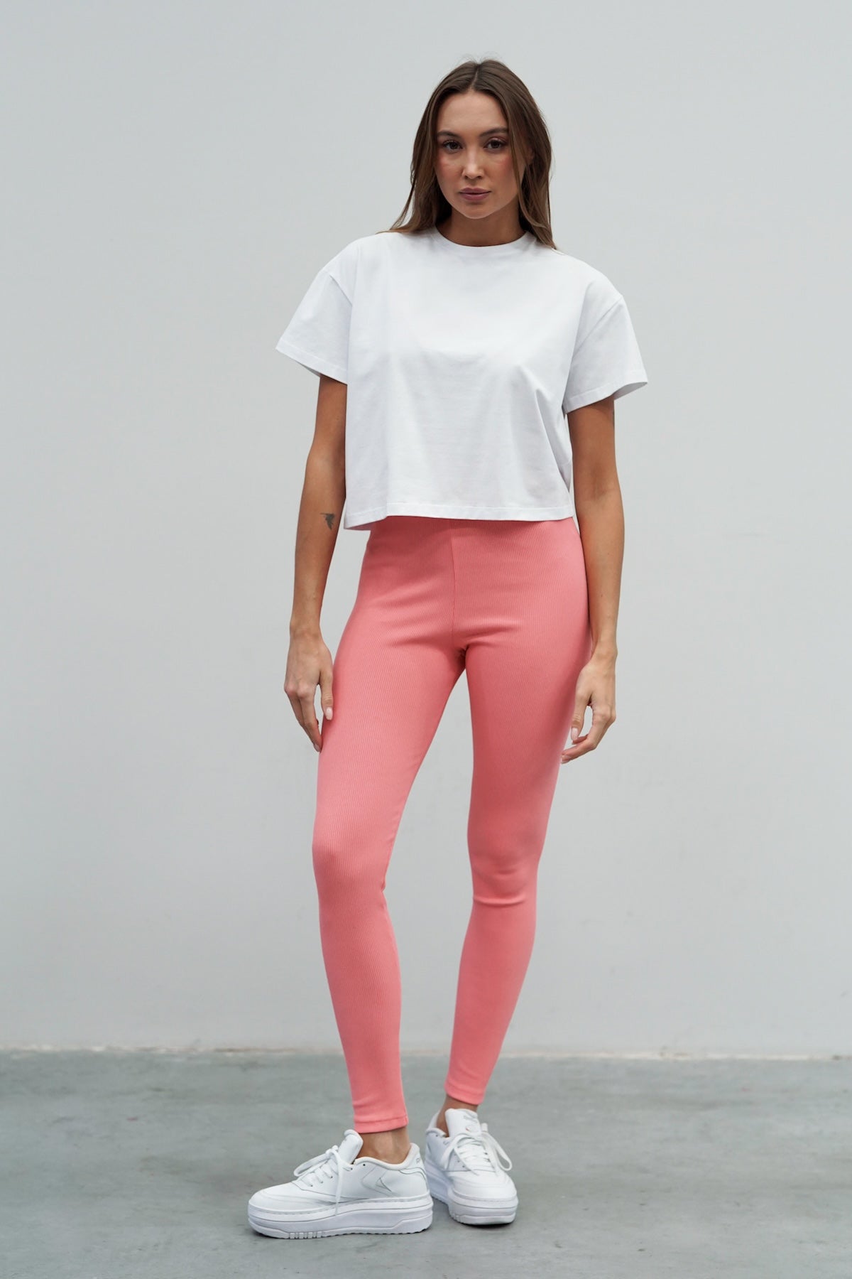 Ribbed, elastic cotton with a cuff not only cleverly lengthens and slims the legs thanks to its texture, but also fits perfectly to the body. Additionally, attention to detail and aesthetic finishes.