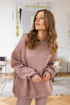 It has an oversized cut in an urban style, which we've given a sporty twist. Nonchalance is added by wider sleeves, finished with an aesthetic welt, and a longer cut, also with a neat finish. All enclosed in fleecy, warm cotton with a characteristic and already well-known teddy bear on the inside. Perfect for a weekend chill on the couch, a walk with friends or any outing.
