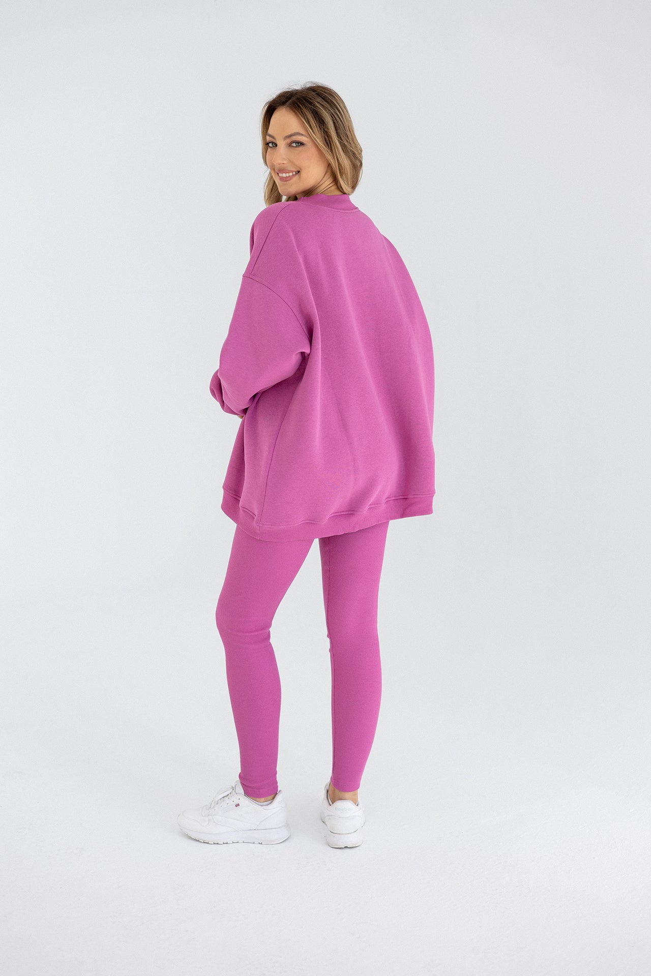 It has an oversized cut in an urban style, which we've given a sporty twist. Nonchalance is added by wider sleeves, finished with an aesthetic welt, and a longer cut, also with a neat finish. All enclosed in fleecy, warm cotton with a characteristic and already well-known teddy bear on the inside. Perfect for a weekend chill on the couch, a walk with friends or any outing.