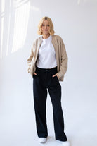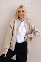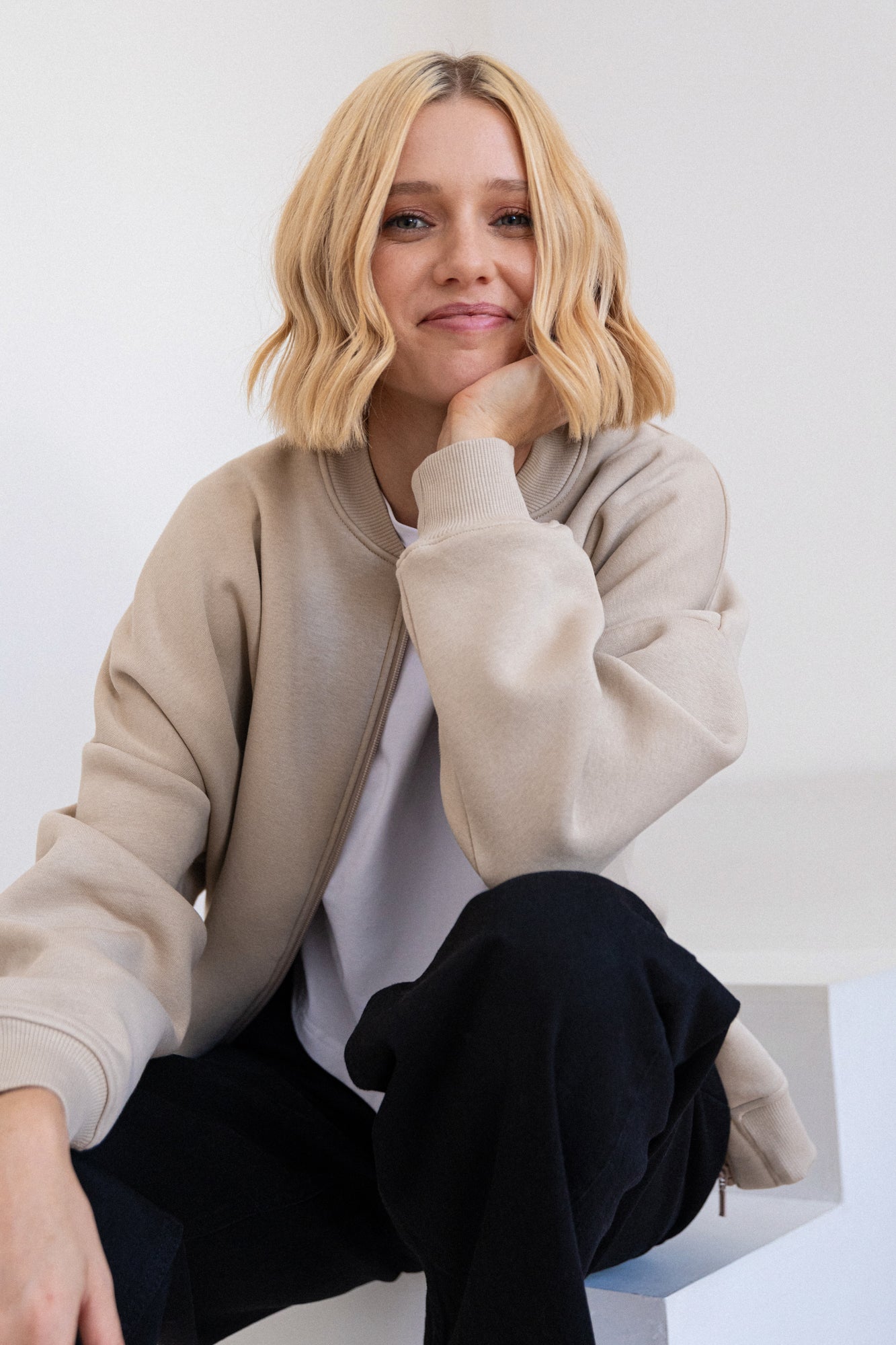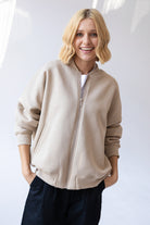 The Sporty Chic bomber jacket is our take on a sporty yet stylish look, not just for autumn. It has a relaxed fit with a slightly dropped shoulder line, and its wider sleeves not only add a touch of nonchalance but are also designed to allow for layering warmer pieces underneath.