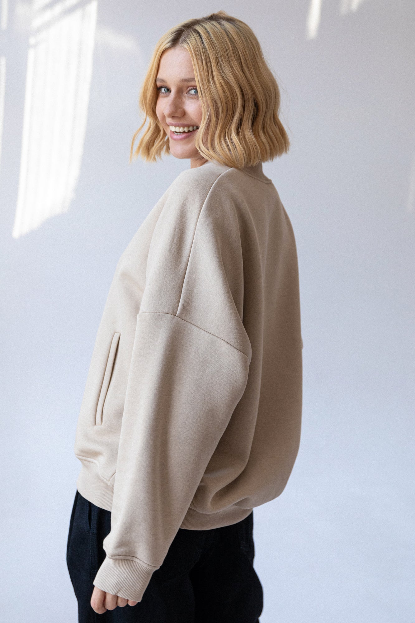 The material is the same cotton blend you already know from our Sweatshirt Coats, featuring a slight addition of polyester for durability.