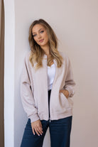 The fit and style are further enhanced by the cotton ribbing at the neck, cuffs, and hem, while the side pockets and aesthetic metal zip fastening add a touch of functionality.
