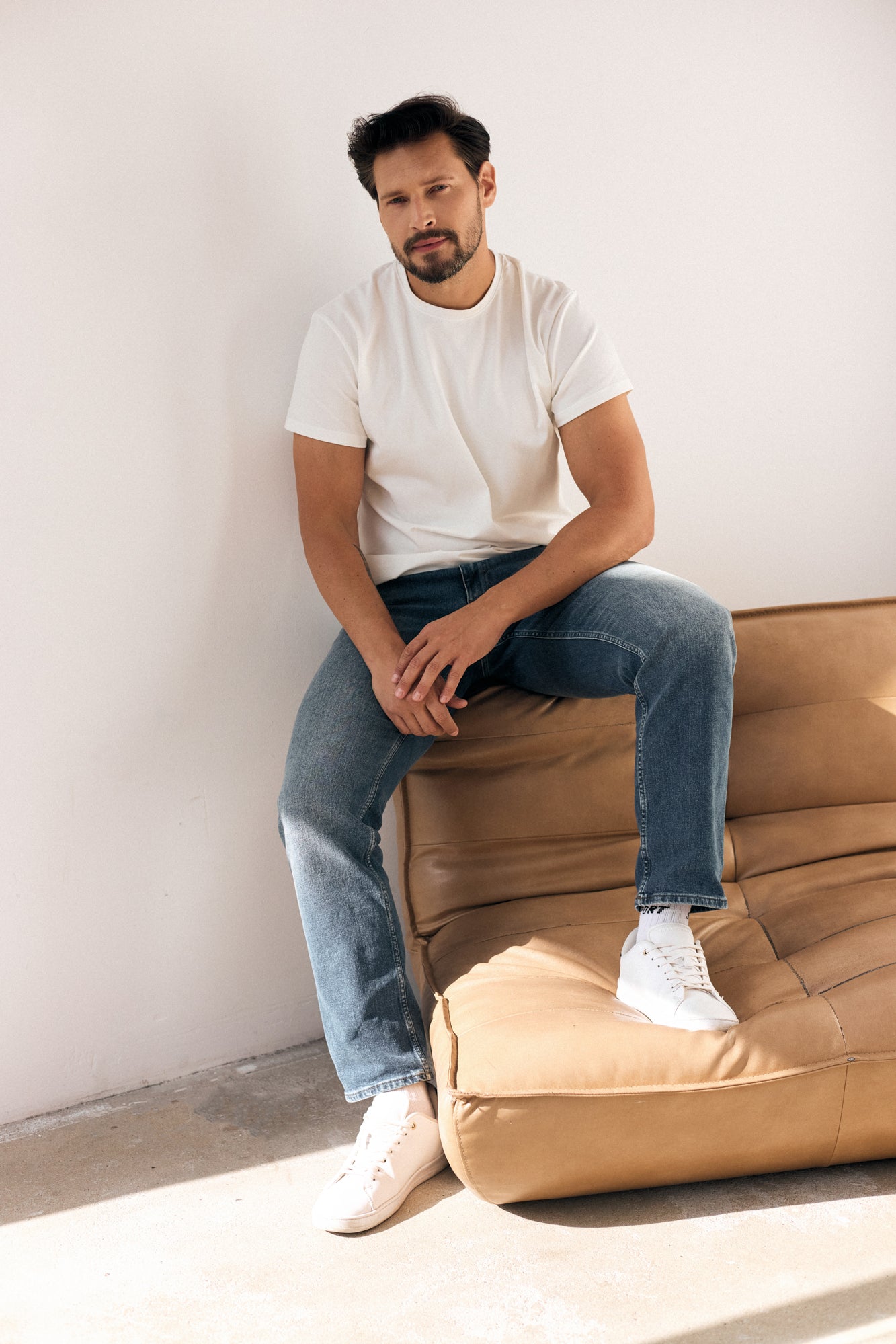 It efficiently combines a sporty approach to the classics and casualness. It fits the figure without unnecessary tightness, and cotton with elastane ensures maximum comfort.