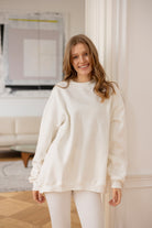 It has an oversized cut in an urban style, which we've given a sporty twist. Nonchalance is added by wider sleeves, finished with an aesthetic welt, and a longer cut, also with a neat finish. All enclosed in fleecy, warm cotton with a characteristic and already well-known teddy bear on the inside. Perfect for a weekend chill on the couch, a walk with friends or any outing.