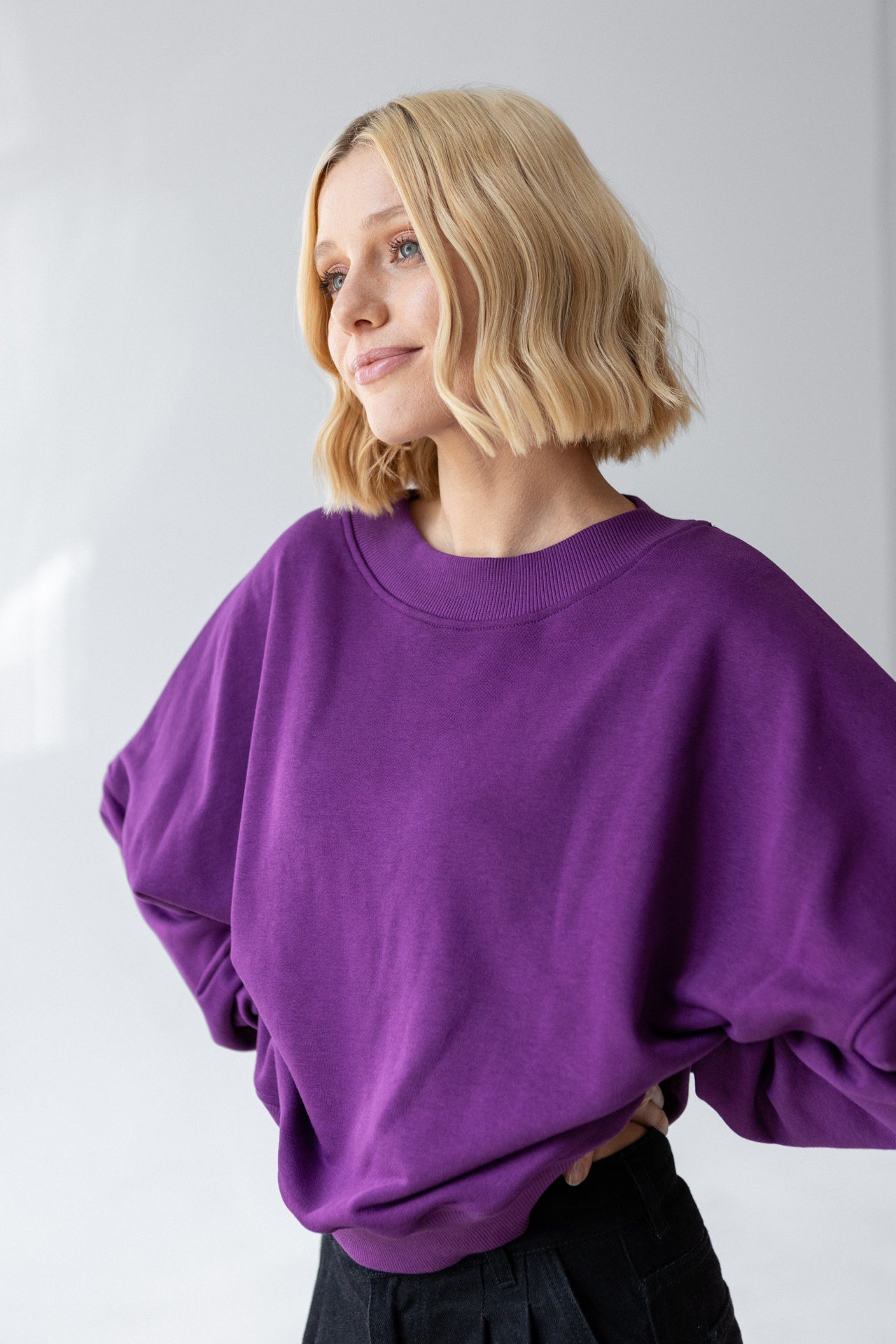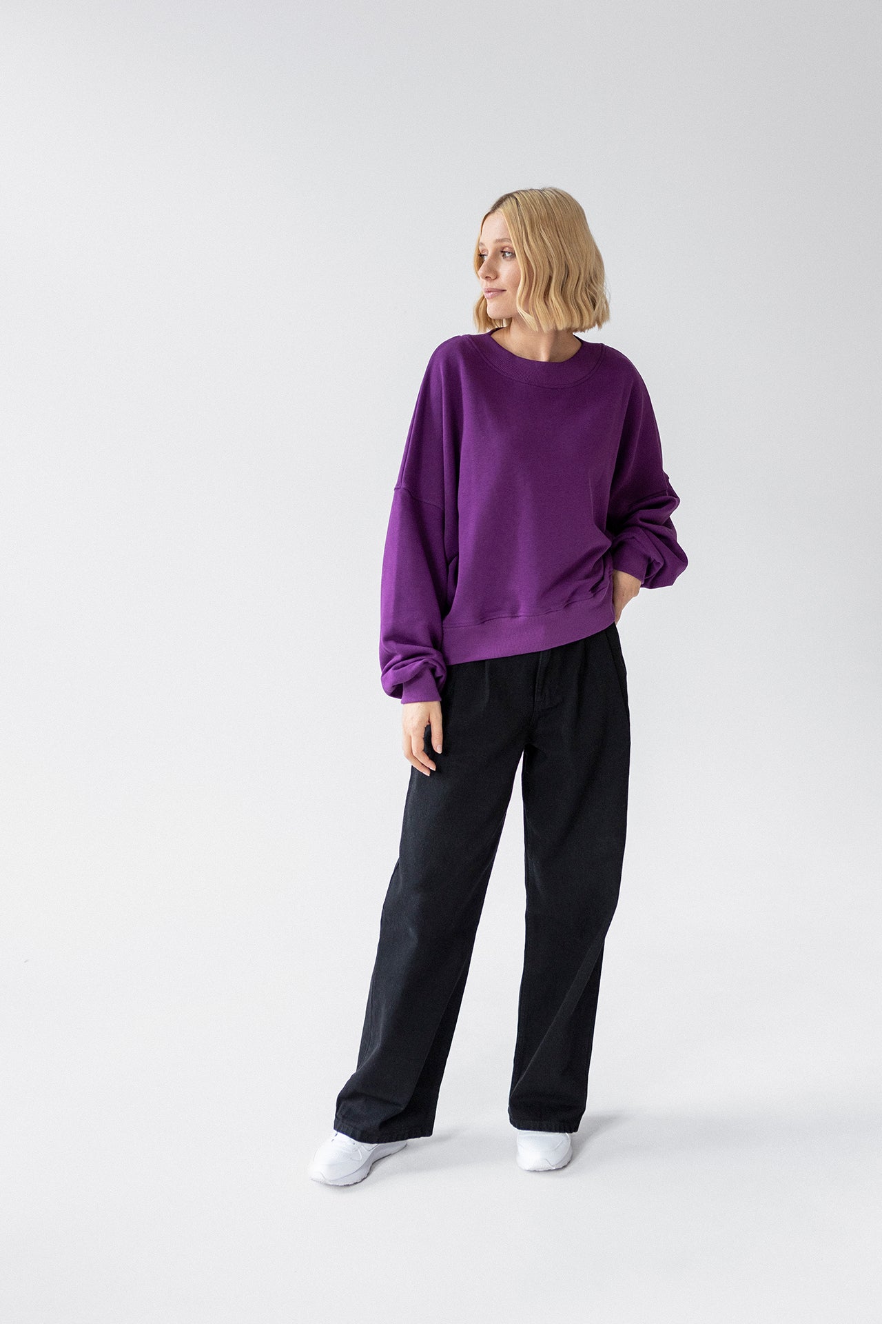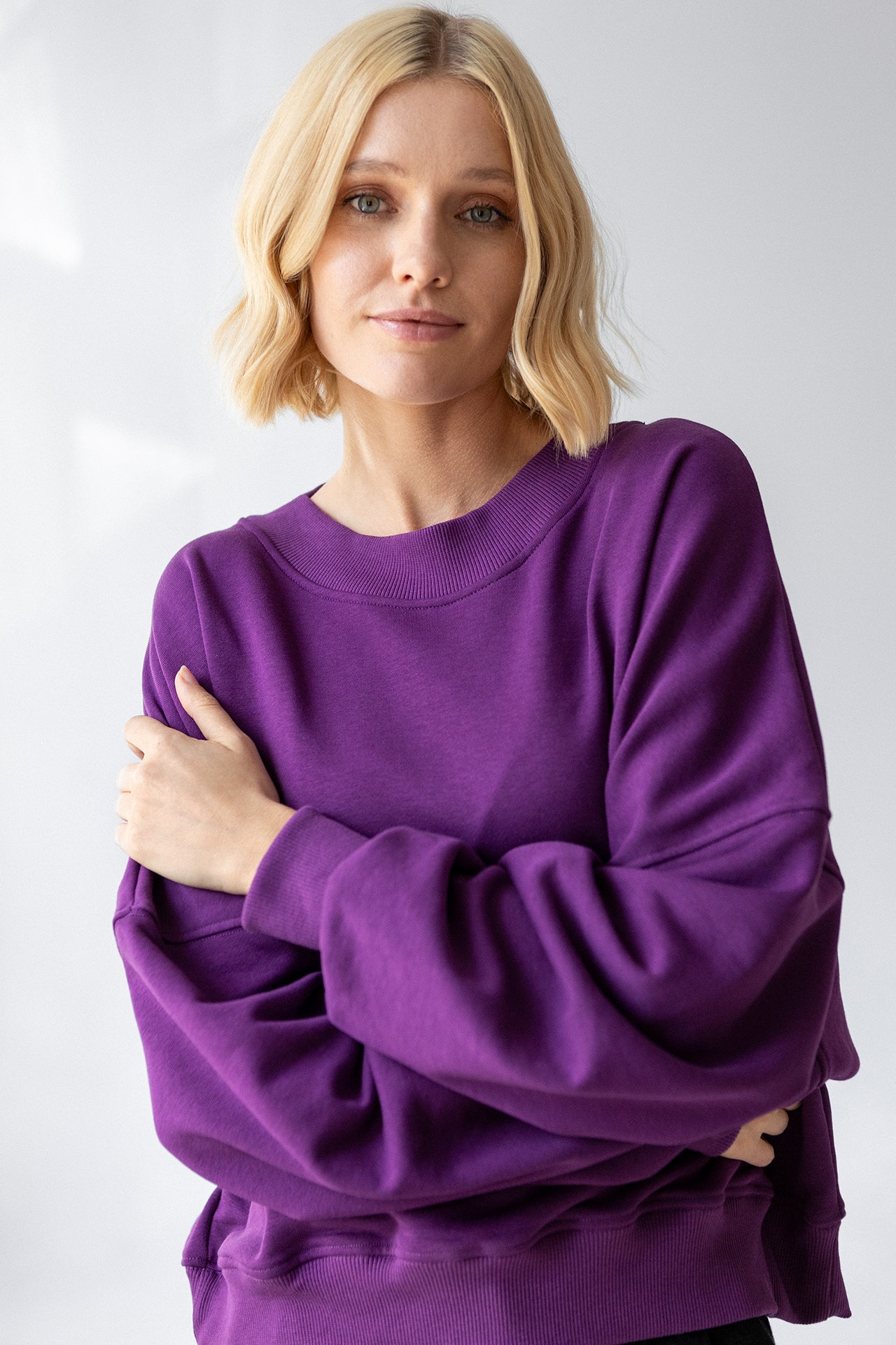 It is distinguished by its lowered shoulder line and wider, puffy sleeves, which literally add style and immediately attract attention. Additionally, a loose, oversized and slightly nonchalant cut, although shorter because it reaches just to the hips. The bottom is finished with a wider cuff, which also enhances the sleeves and neckline. Effect? Comfort has not looked so feminine and original for a long time.