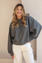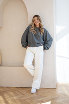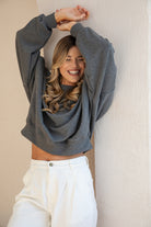 It is distinguished by its lowered shoulder line and wider, puffy sleeves, which literally add style and immediately attract attention. Additionally, a loose, oversized and slightly nonchalant cut, although shorter because it reaches just to the hips. The bottom is finished with a wider cuff, which also enhances the sleeves and neckline. Effect? Comfort has not looked so feminine and original for a long time.