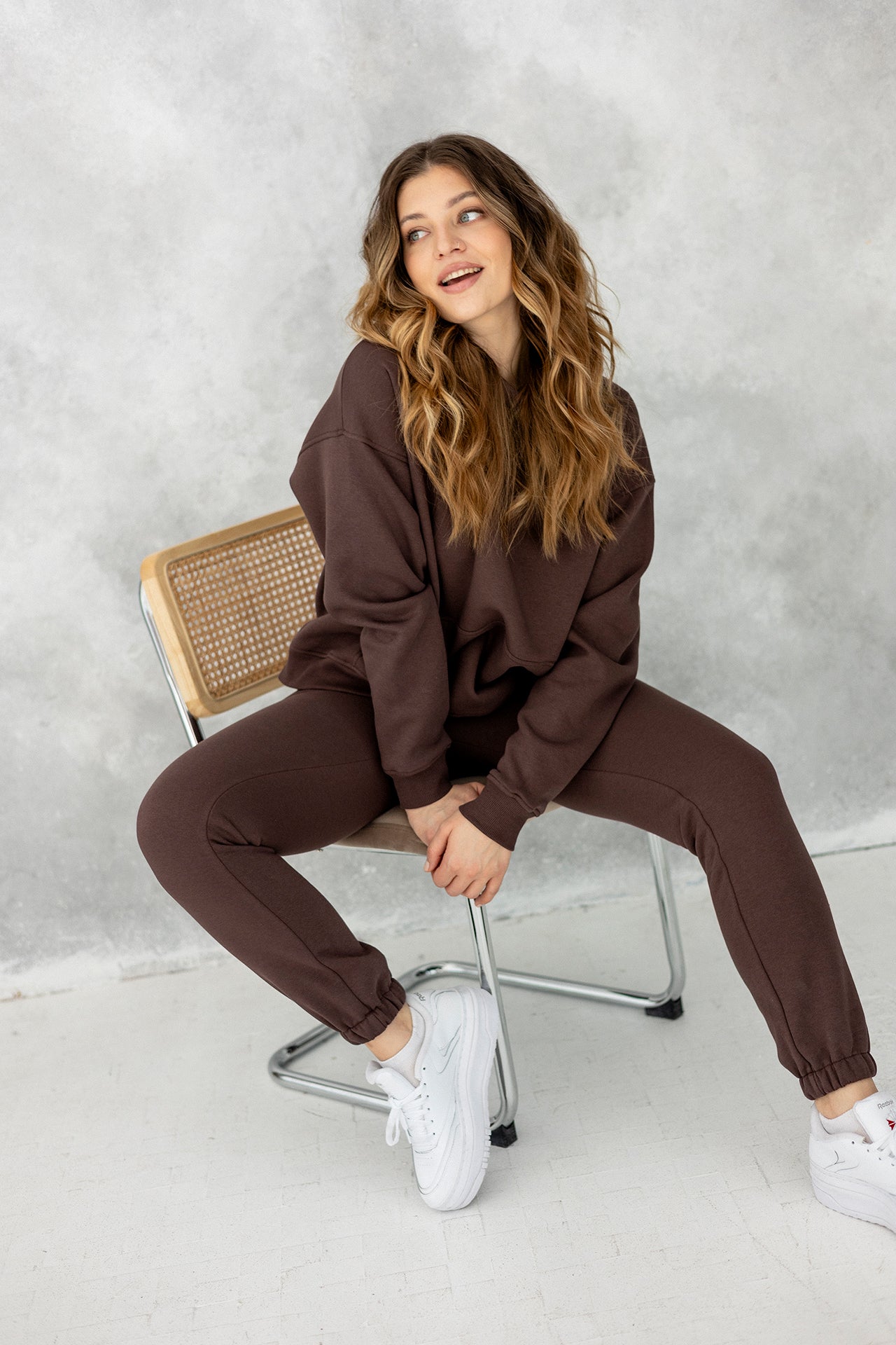 The cut and sleeves are a bit looser, but with some common sense, so that it is comfortable and feminine, and your figure is properly accentuated. Plus attention to trimming and aesthetic ribbing. It reaches just below your hips, so you can easilly wear it with leggings.