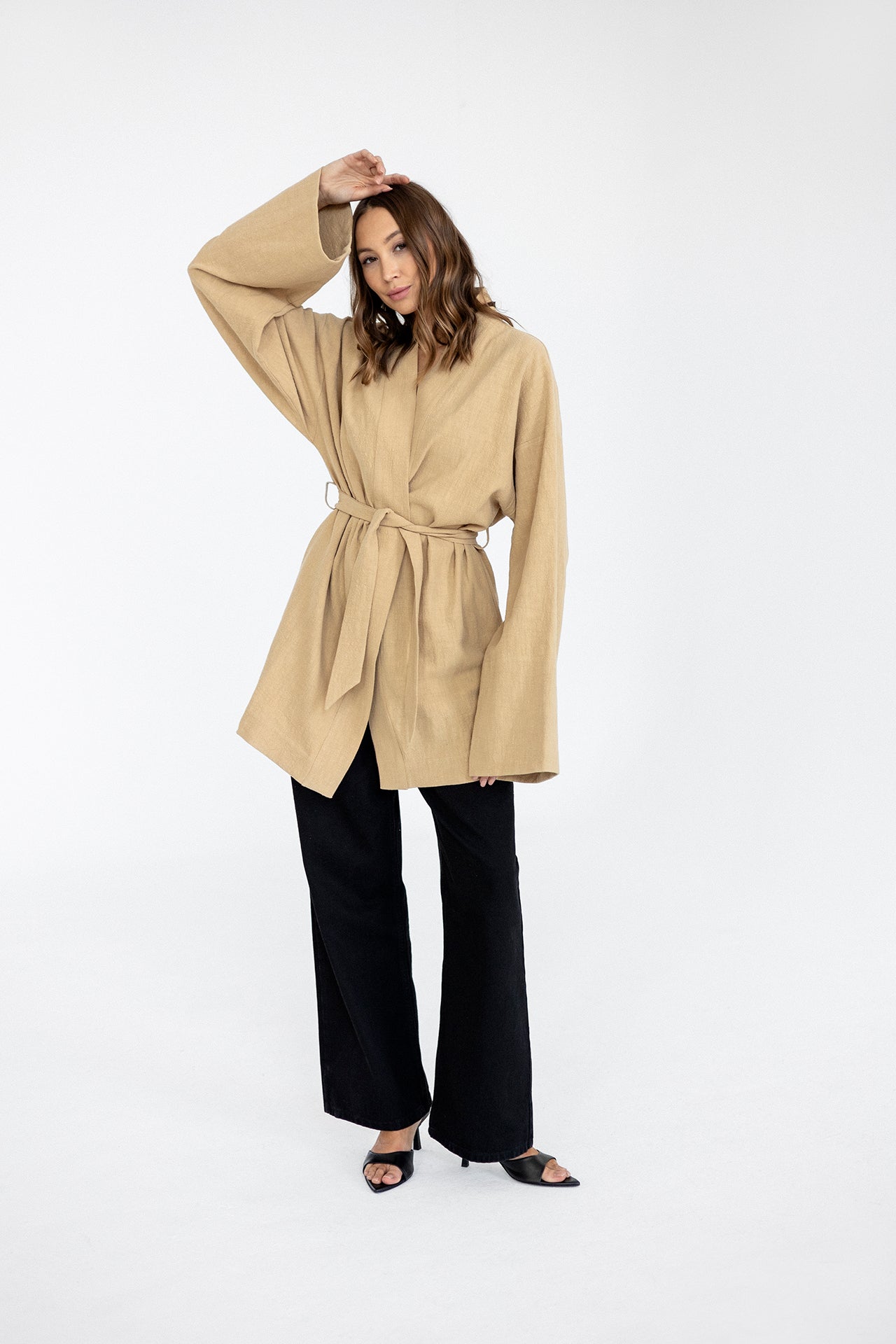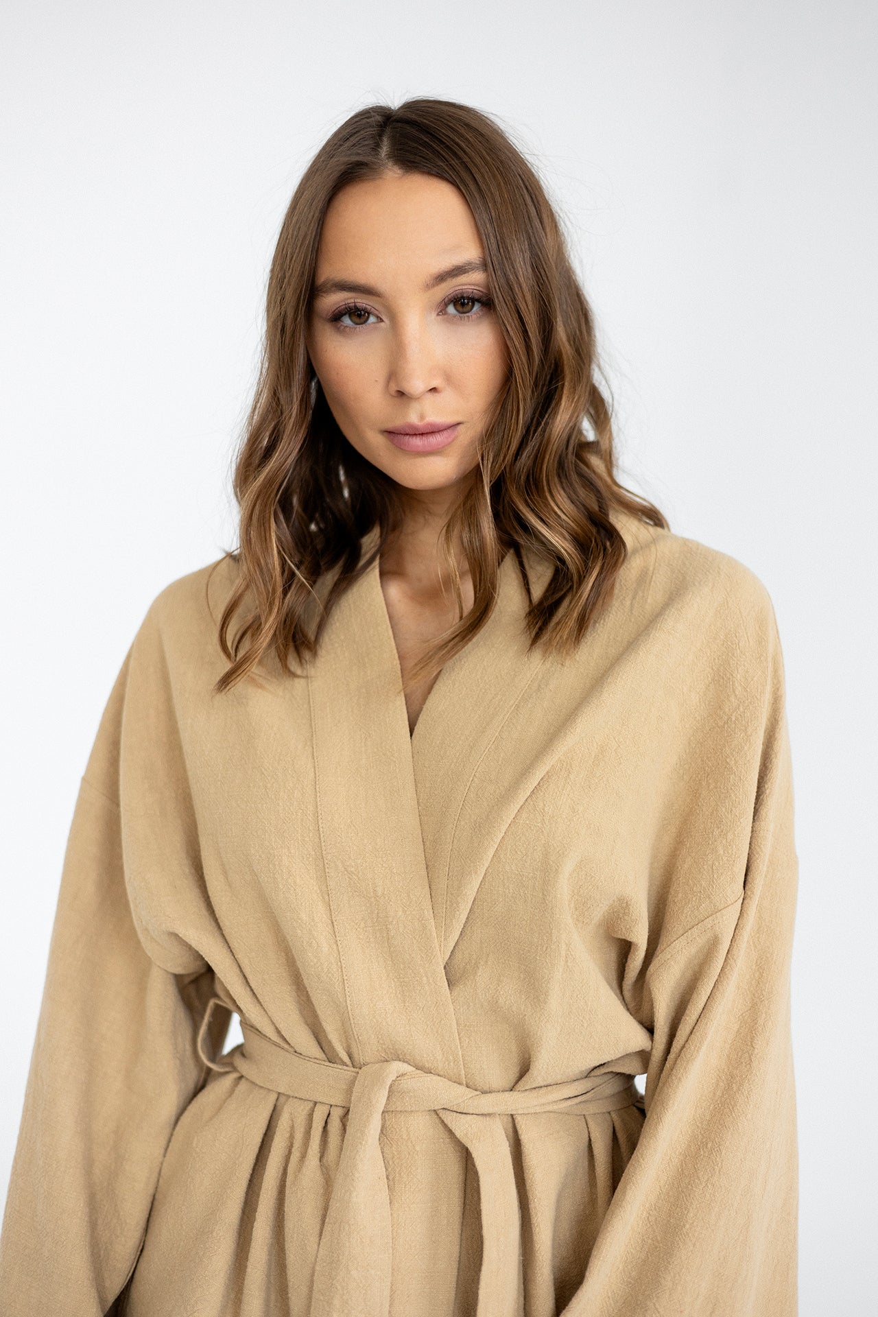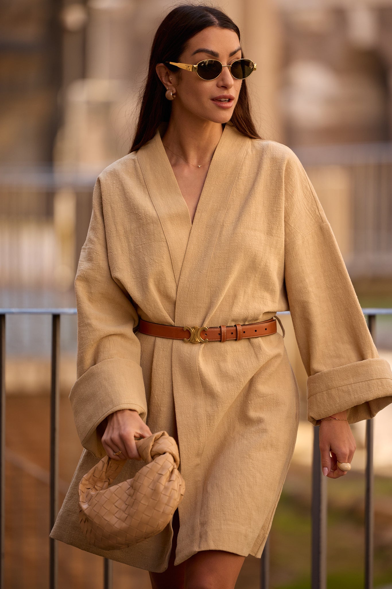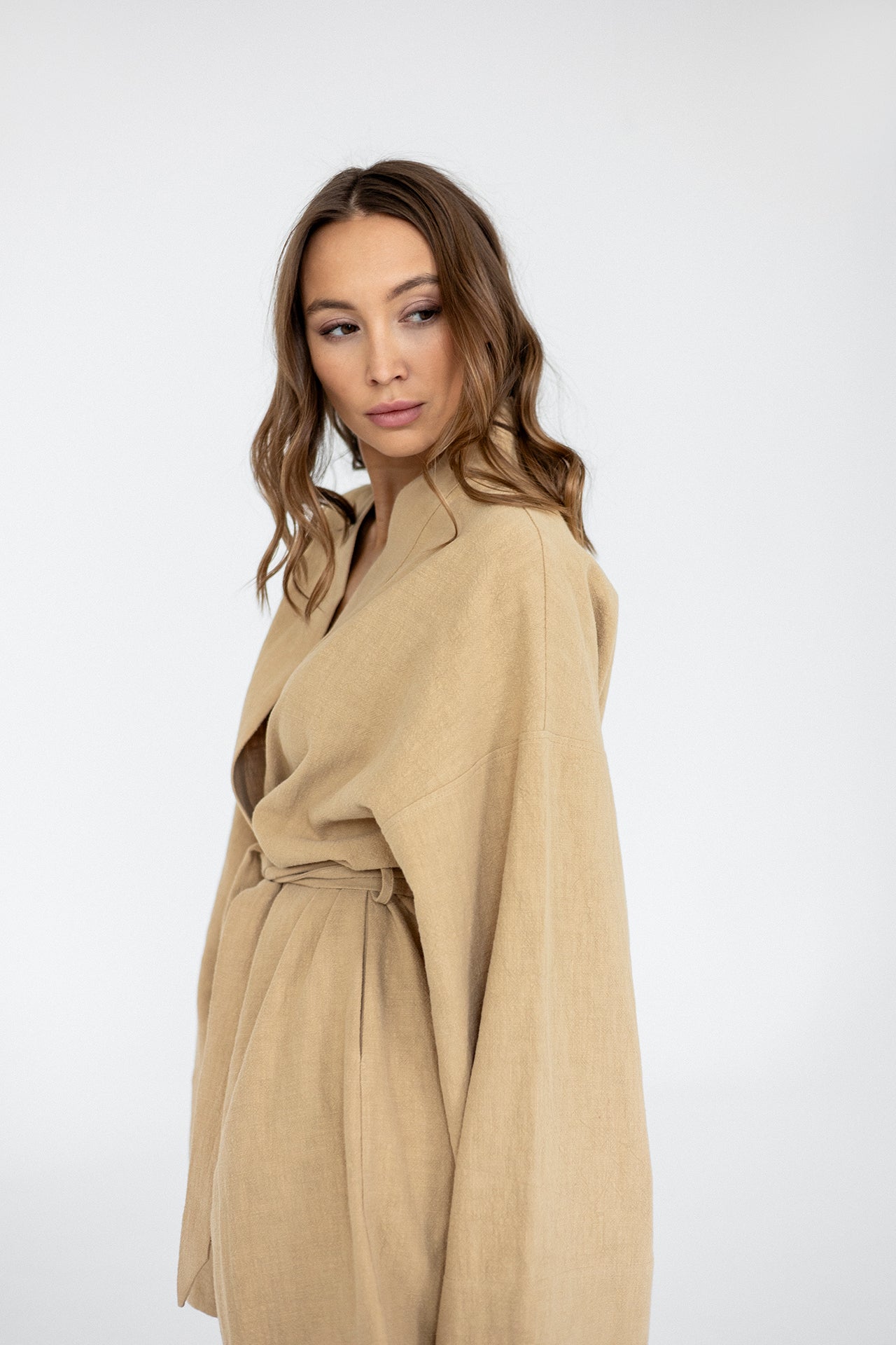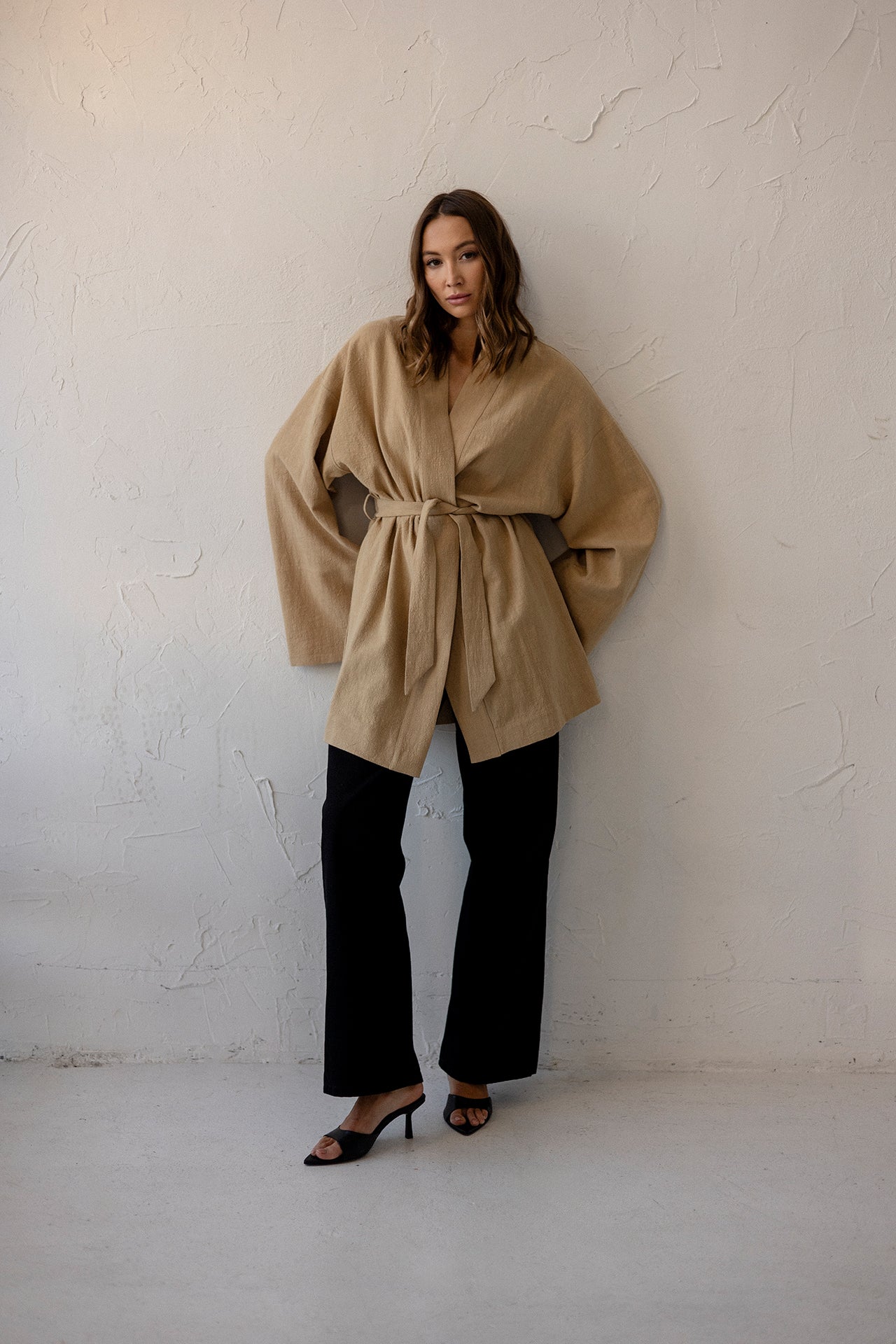 It has a timeless, slightly oversized, boxy cut, which, combined with muslin cotton, creates the perfect combination of casualness and femininity, definitely not only for summer. However, we had to spice up the classics. Nonchalantly widened, shorter sleeves with delicate cuffs and an asymmetric hem add character to it.