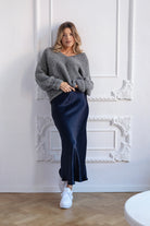 It has a timeless, fitted but not tight cut that not only drapes beautifully but also accentuates your figure. A subtle elastic waistband ensures comfort while highlighting the waist, and the satin viscose fabric adds a touch of lightness. Add to that the ankle-length maxi design for creating both effortlessly chic and elegant outfits.