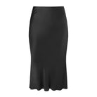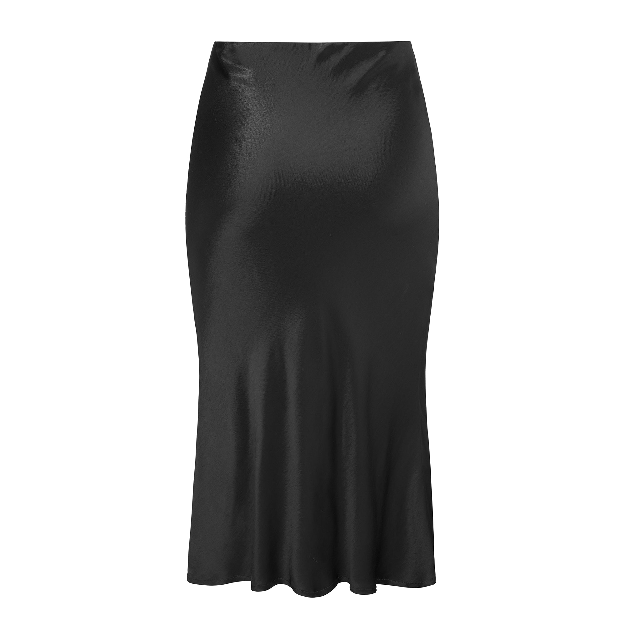 It has a timeless, fitted but not tight cut that not only drapes beautifully but also accentuates your figure. A subtle elastic waistband ensures comfort while highlighting the waist, and the satin viscose fabric adds a touch of lightness. Add to that the midi length, falling just below the knee, that gives it a casual feel and makes it perfect for everyday outfits.