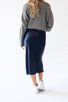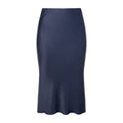 It has a timeless, fitted but not tight cut that not only drapes beautifully but also accentuates your figure. A subtle elastic waistband ensures comfort while highlighting the waist, and the satin viscose fabric adds a touch of lightness. Add to that the midi length, falling just below the knee, that gives it a casual feel and makes it perfect for everyday outfits.