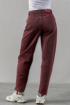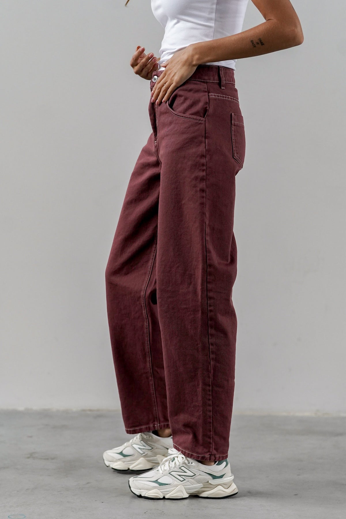 Spodnie dżinsowe typu baggy, stworzone z myślą o wygodzie i stylu, które łączą w sobie swobodę z wyrazistym charakterem. Ich luźny krój zapewnia komfort noszenia i nonszalancki look, a wysoki stan podkreśla talię i utrzymuje idealne proporcje. Szerokie nogawki miękko opadają, tworząc lekko oversize’owy efekt, doskonale współgrający z casualowymi stylizacjami. Całość dopełniają mocne, wyraziste przeszycia oraz charakterystyczny detal – skórka z logo w intensywnym różowym kolorze, która przełamuje klasykę i dodaje spodniom unikalnego akcentu. Idealny wybór dla osób, które cenią prostotę, ale lubią wyróżniać się z tłumu. Kieszenie też są oczywiście.