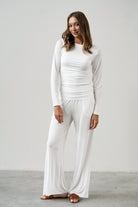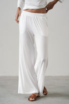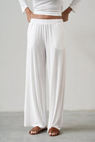 Lekkie, zmysłowe i stworzone do ruchu – te spodnie to uosobienie wygody w kobiecym wydaniu. Swobodny krój z rozszerzającą się nogawką subtelnie podkreśla linię ciała nie tylko wysmuklając nogi, ale też zapewniając wygodę i lekkość przy każdym kroku.