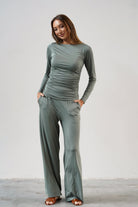 Wykonane z wysokogatunkowej dzianiny – 94% modalu i 6% elastanu – są nie tylko przyjemnie miękkie, ale też oddychające i trwałe. Materiał pięknie się układa, otulając skórę jak druga skóra, a jednocześnie pozwala jej swobodnie oddychać.